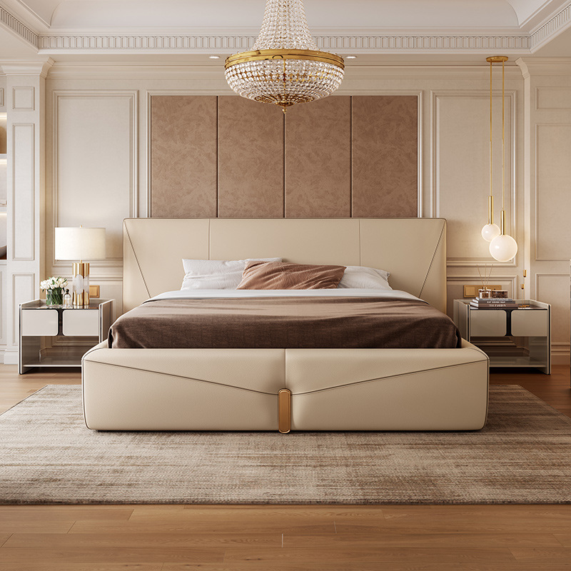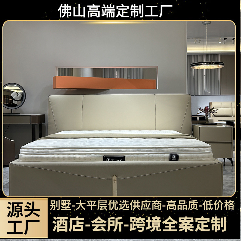 高級イタリア式シンプルな本革ベッド封筒ベッド主臥クリーム風結婚ベッド寝室質感ソフトバッグ別荘ツインベッド
