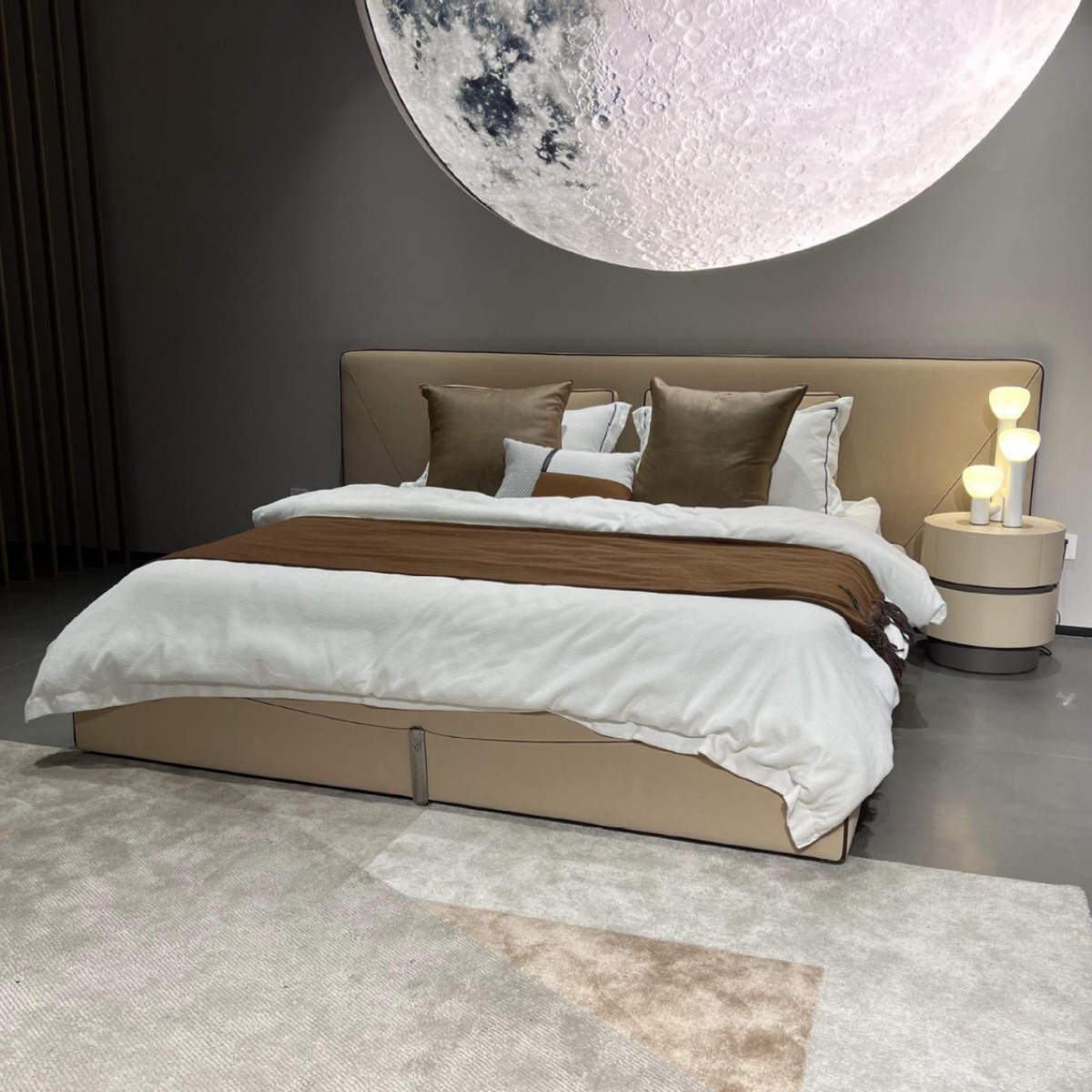 イタリア式軽豪華封筒ベッド別荘大戸型ワイドスクリーン主臥ナパ真皮ツインベッド大平層デザイナー