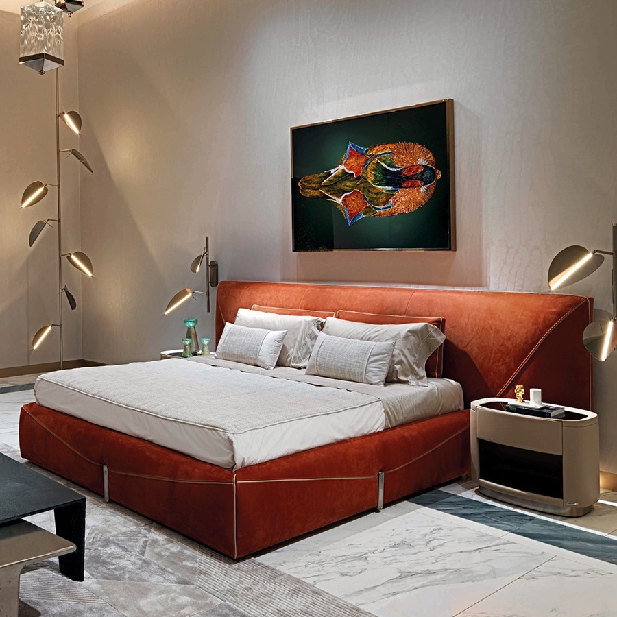イタリアvision aire現代フロスト真皮BASTIAN封筒ベッド別荘高級軽贅沢主寝ベッド