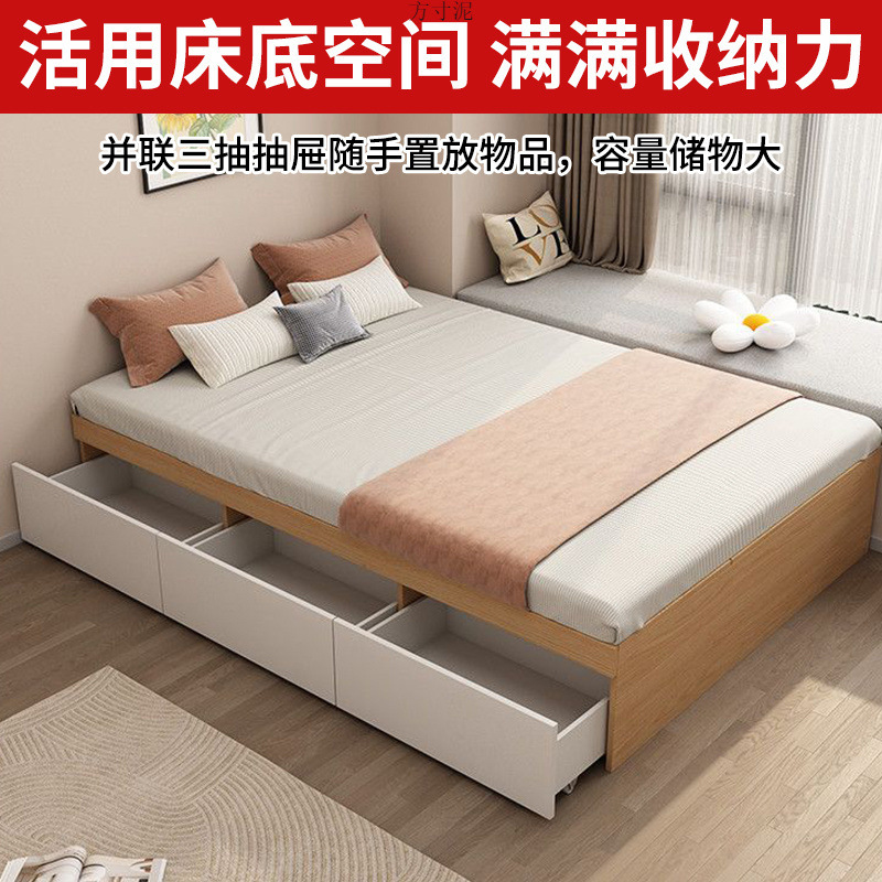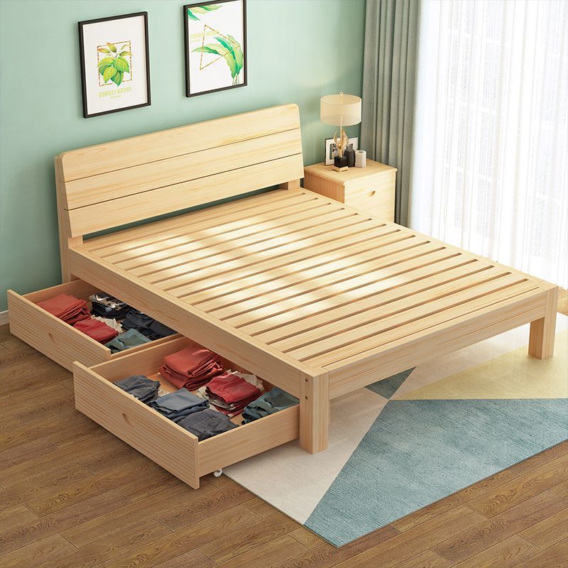 無垢材ベッド シンプル収納 ダブルベッド ハイボックス ベッドサイド収納なし 小型畳 シングルベッド 越境貿易