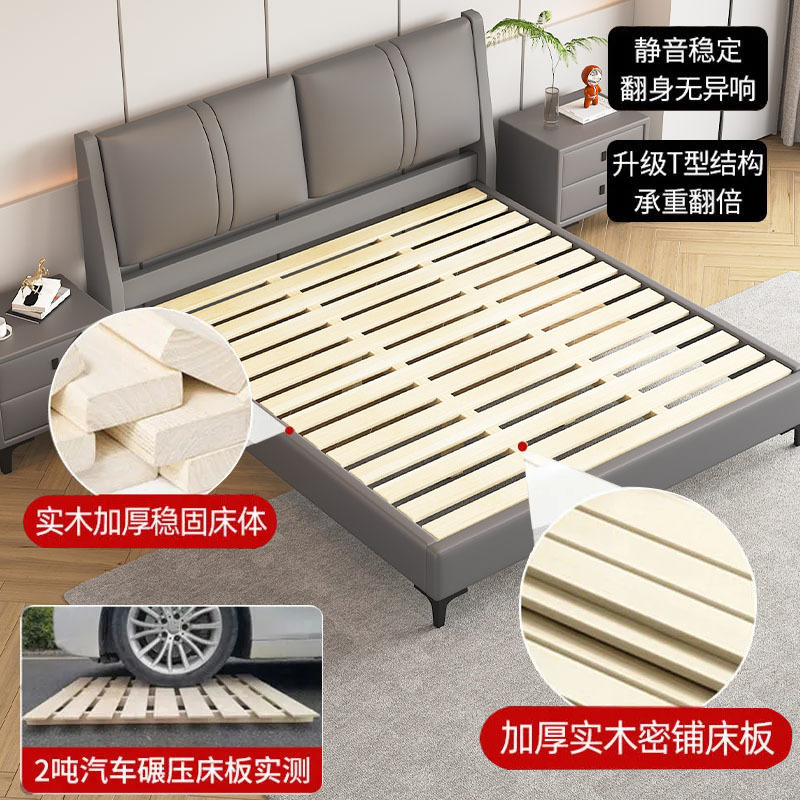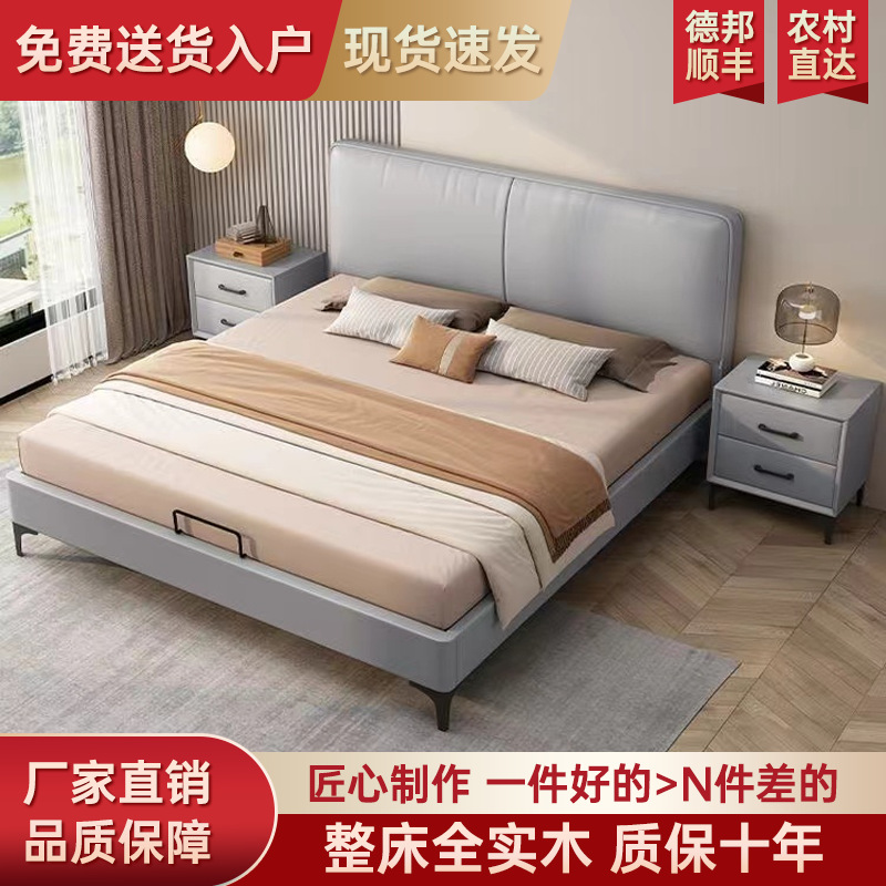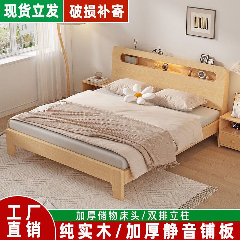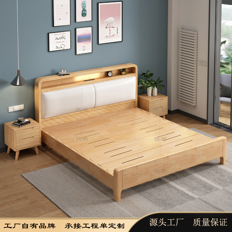 軽量高級ソフトベッドダブル 1.8x2M シンプルな無垢材ベッド 1.5 レンタルハウスマスターベッドルーム大型ベッド工場ワンピース卸売