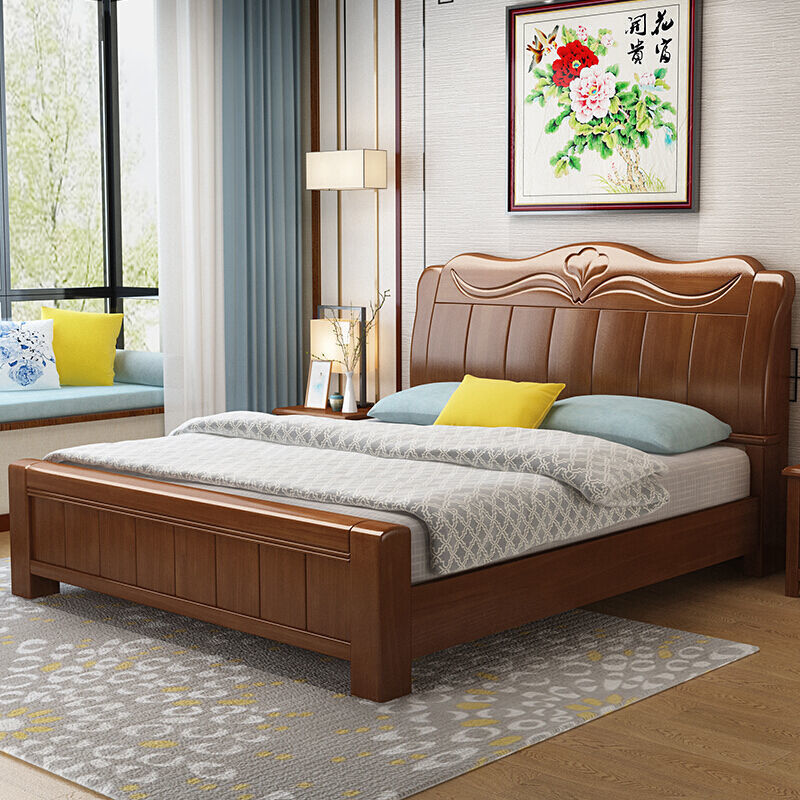 ヨーロピアンスタイル無垢材ベッドモダンシンプル1.8mマスターベッドルームダブルベッド1.5x2mレンタルルーム1.2mシングルベッド工場