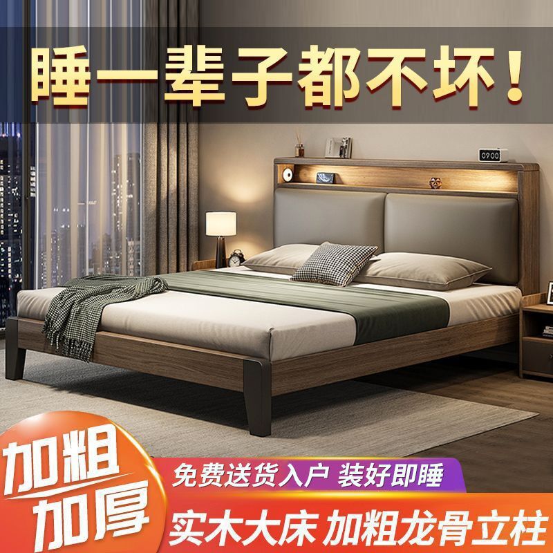 実木ベッド1.5メートル家庭用現代シンプルツインベッド1.8メートル賃貸住宅成人シングルベッド1.2mソフトベッド