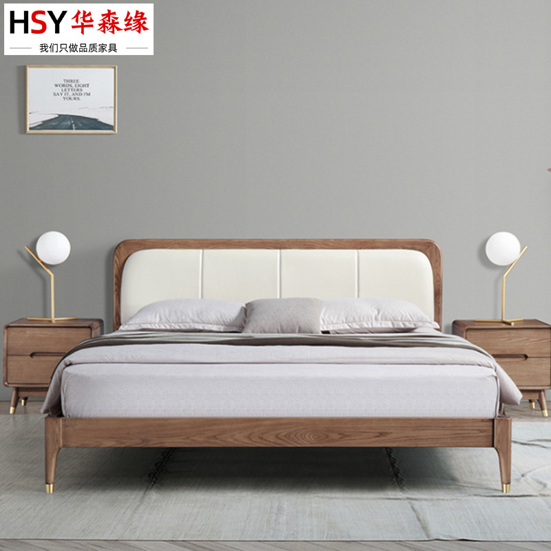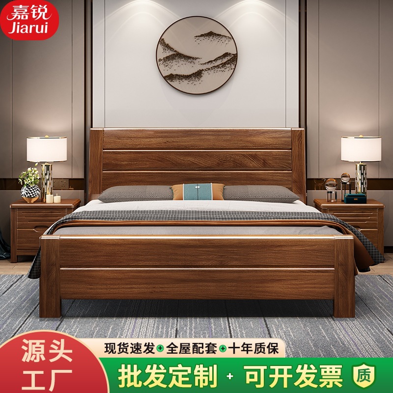 ウォールナット無垢材ベッド 1.8m モダンシンプルダブル 1.5 マスターベッドルームベッド 1.2m シングルベッド結婚式のベッド卸売