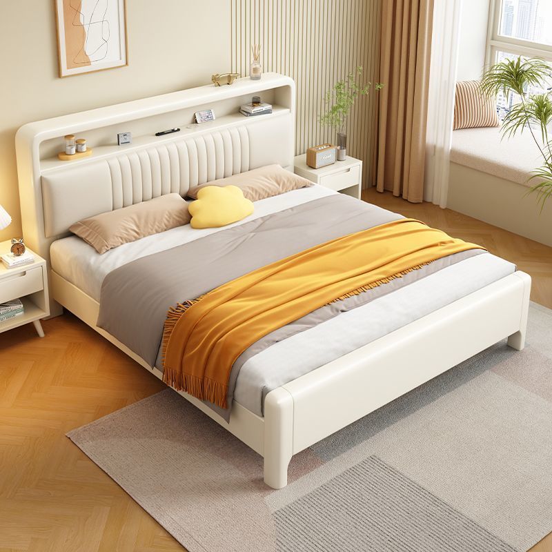 北欧 1.8m ダブル無垢材ベッドクリーム 1.5m モダンな収納シンプルな 1.2 メートルのソフトパッケージベッド白い寝室のベッド