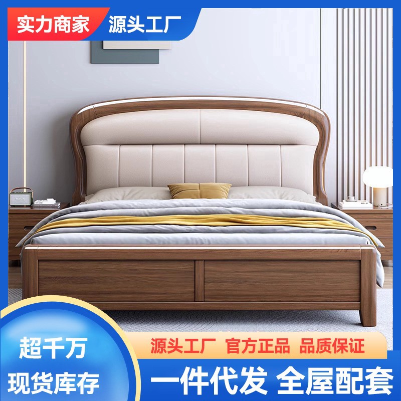 黒胡桃全実木床1メートル8人用ベッド主臥現代シンプル家庭用小戸型ベッドの柔らかい背もたれ