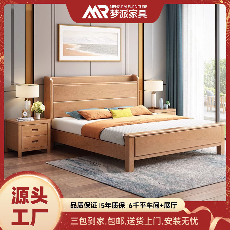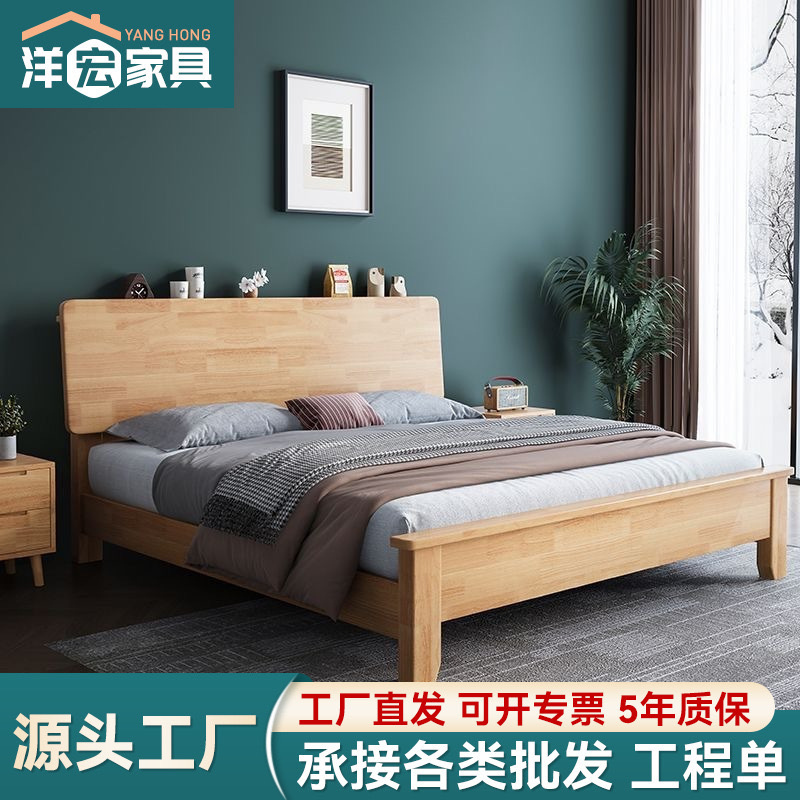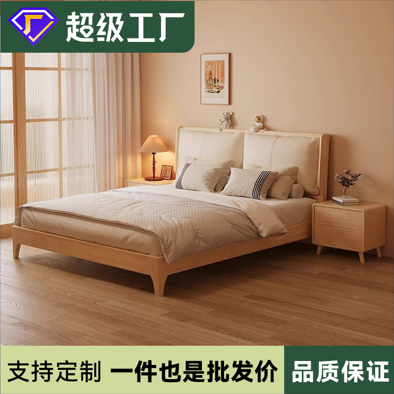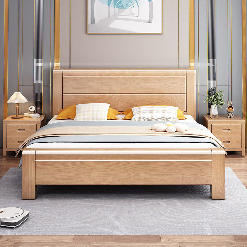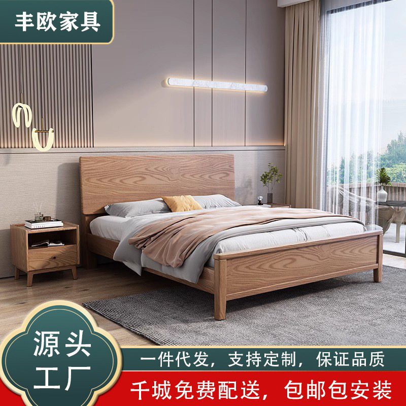 アッシュ無垢材ベッド 1.8m ダブルベッド北欧ログスタイルシンプルな小さなアパートの寝室 1.6m 個ドロップシッピング