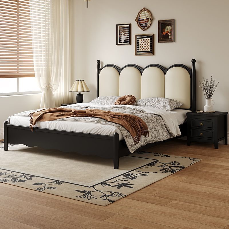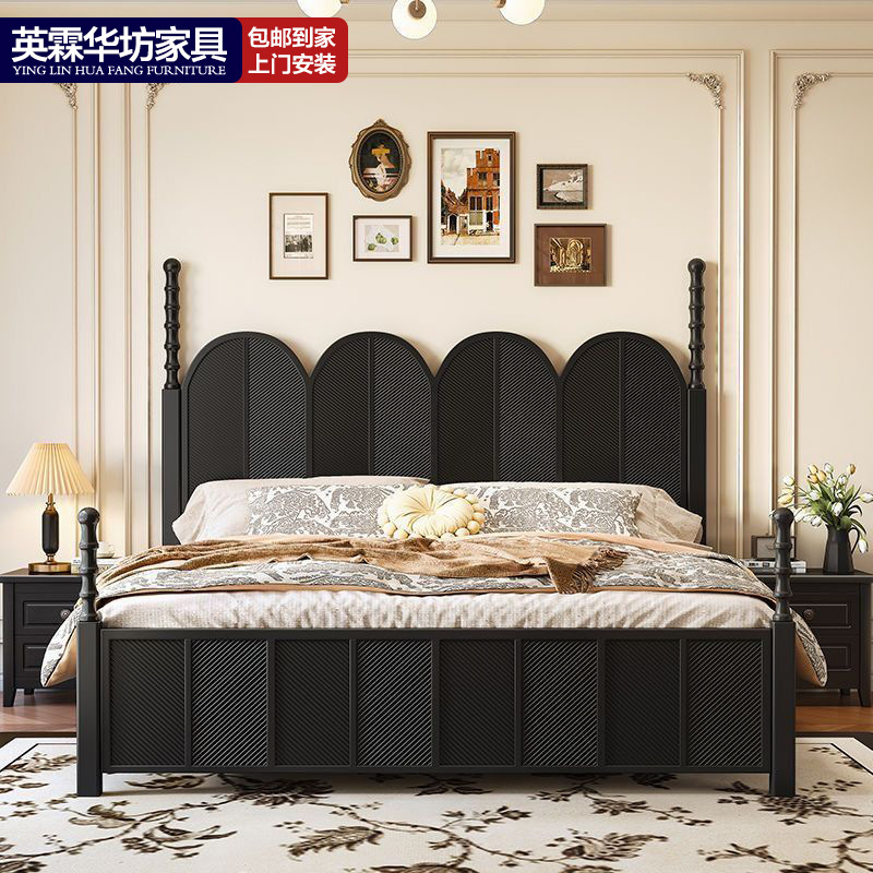 フレンチモダンシンプル無垢材ベッドブラックマスターベッドルーム 1.8m ダブルベッド 1.5m ミッドセンチュリースタイルライト高級ファッションベッド