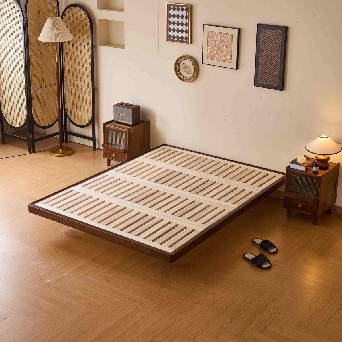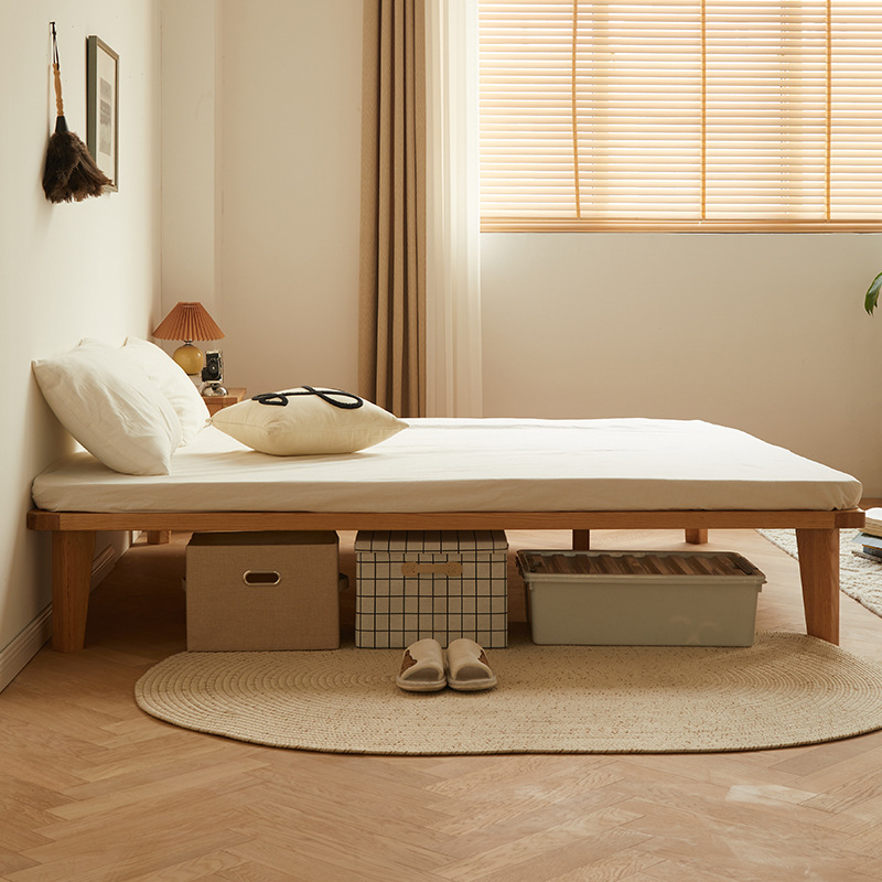 ロングハウスベッド、総無垢材ほぞ穴吊り下げ台、和風低畳、カスタマイズ可能なハードメープルベッドフレーム、ベッドサイドバックなし&Z