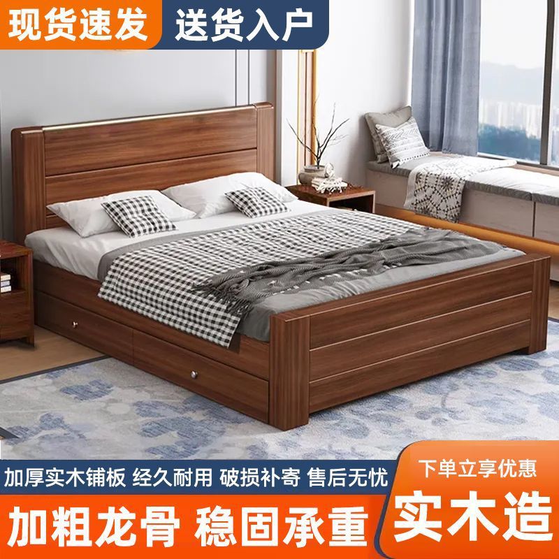 全実木ベッド1.5メートル家庭用中国式1.8m主臥ツインベッド賃貸住宅は耐久性1.2メートルシングルベッドを厚くした