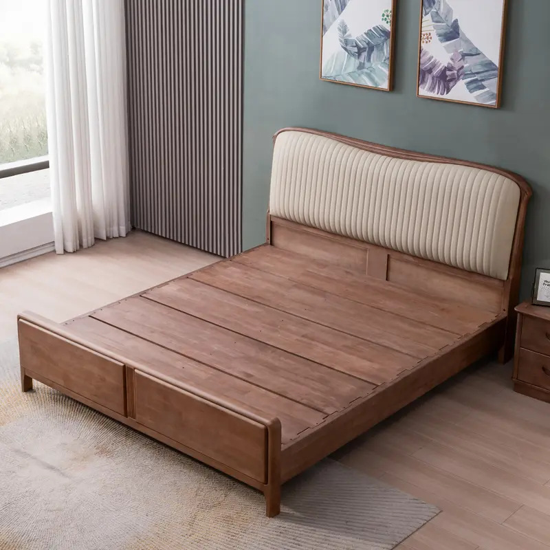 南米の黒胡桃の木のベッドは現代的にシンプルです。