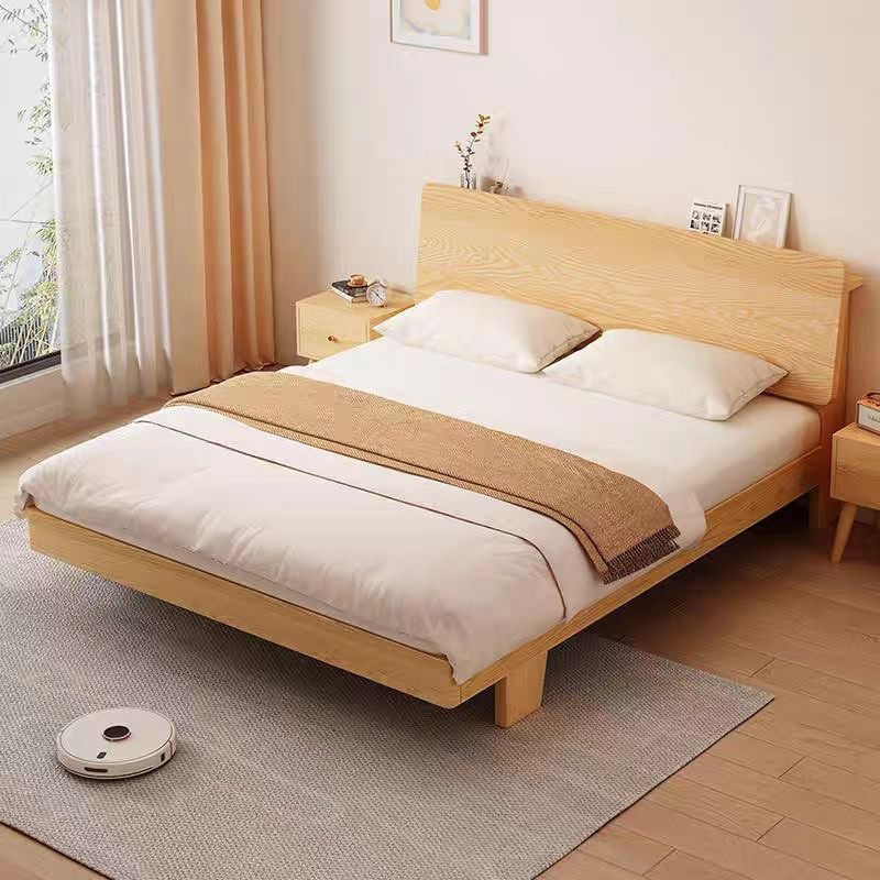 新型実木ベッドワイド簡易ダブルベッド現代骨格ベッド主臥小戸型畳ins風木ベッド