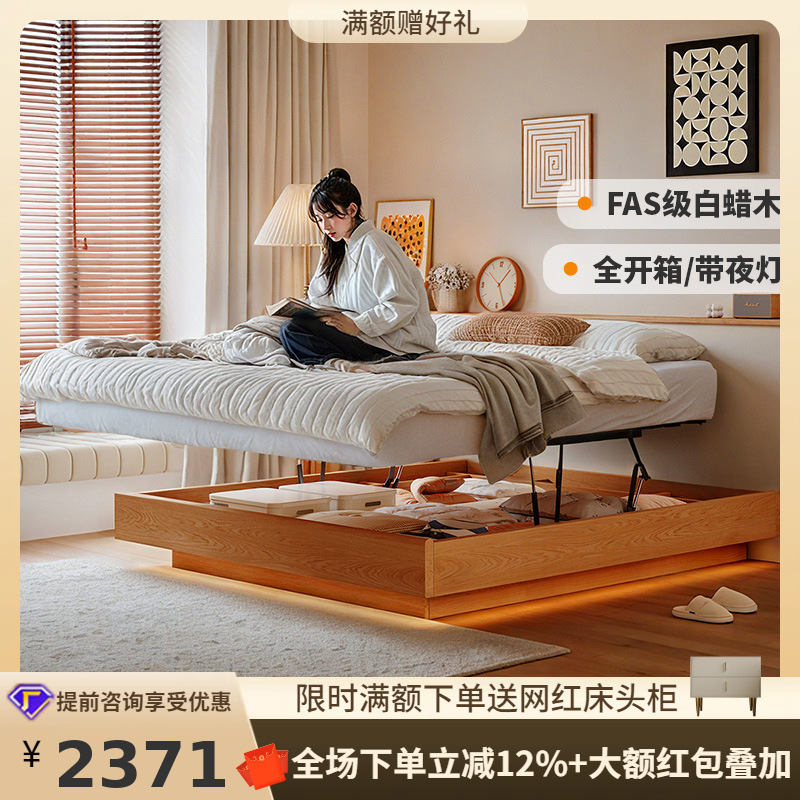 桐語特時琼北欧日本式白蝋木ベッドなし二人箱高箱移動収納ベッド実木床