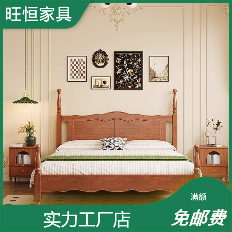 全実木床オークレトロ黒1.2メートル1.8メートルダブルベッドアメリカ式北欧シンプル現代家庭用
