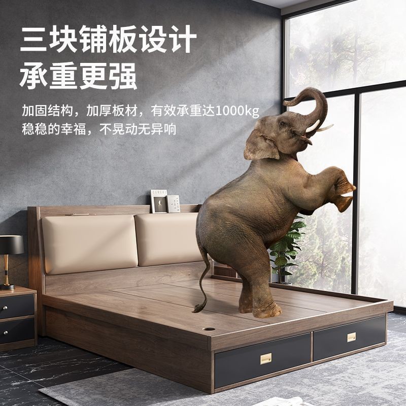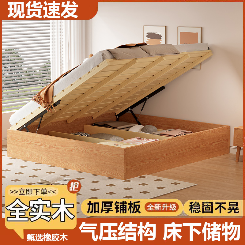 中国風無垢材ベッド 1.8m ダブルウェディングベッドモダンシンプル 1.5m 収納シングルベッドマスターベッドルーム空気圧ハイボックスベッド