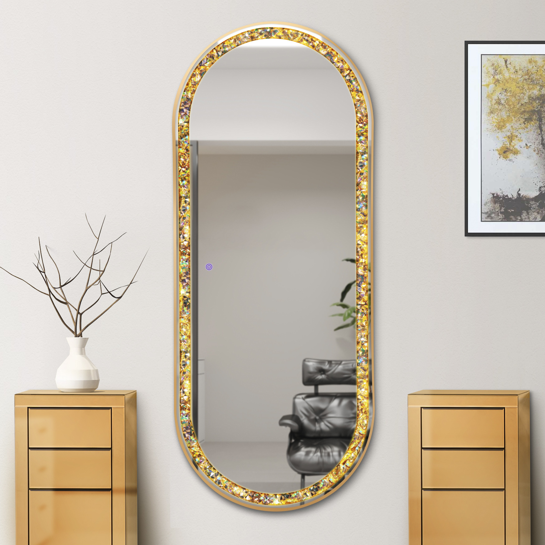 床置き壁掛け両用ミラー理髪店ヘアカットミラーテーブルタッチスクリーンインテリジェントスイッチ発光ライトミラー全身ドレッシングミラー