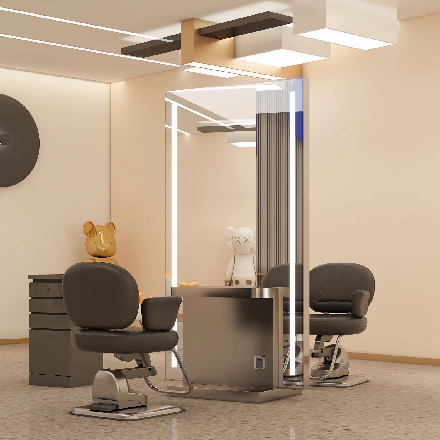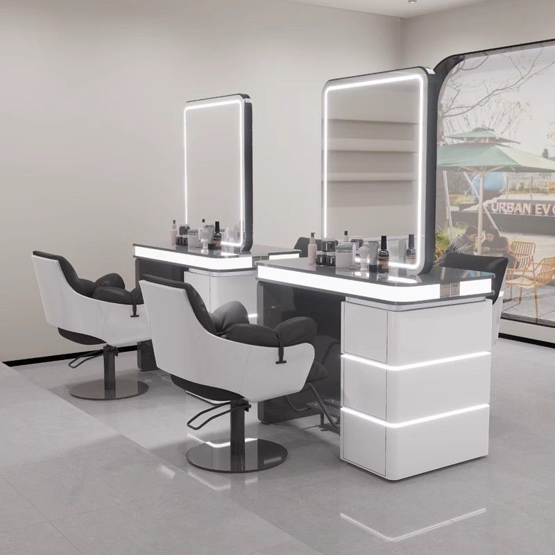 理髪店片面ミラーテーブル、ヘアサロン一体型専用作業台、美容室キャビネット、パーマ・染めLEDネット有名人ミラー