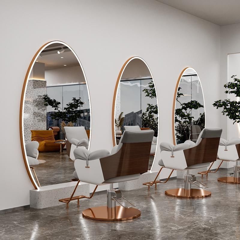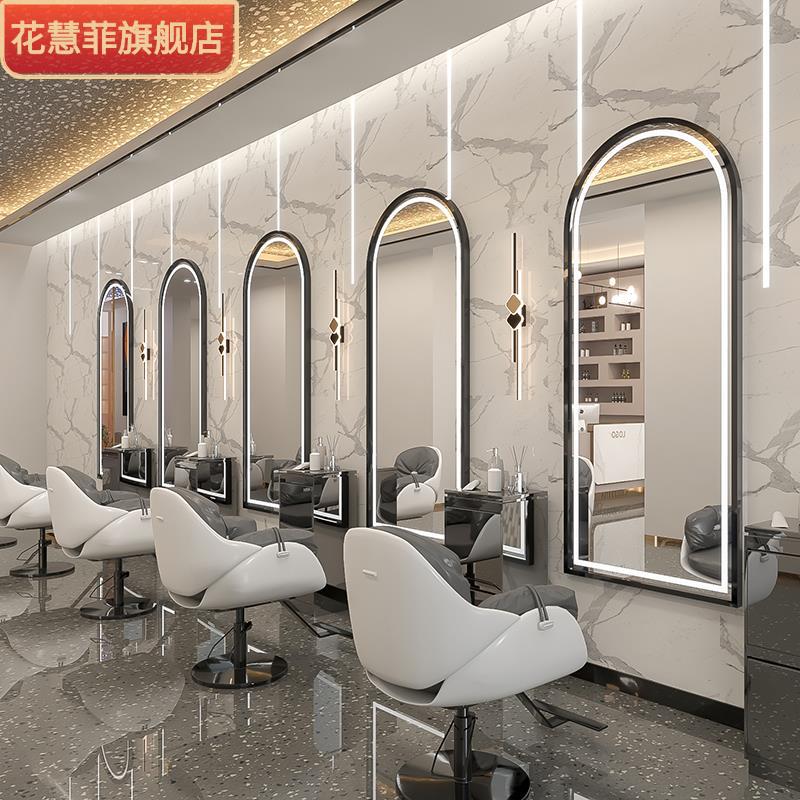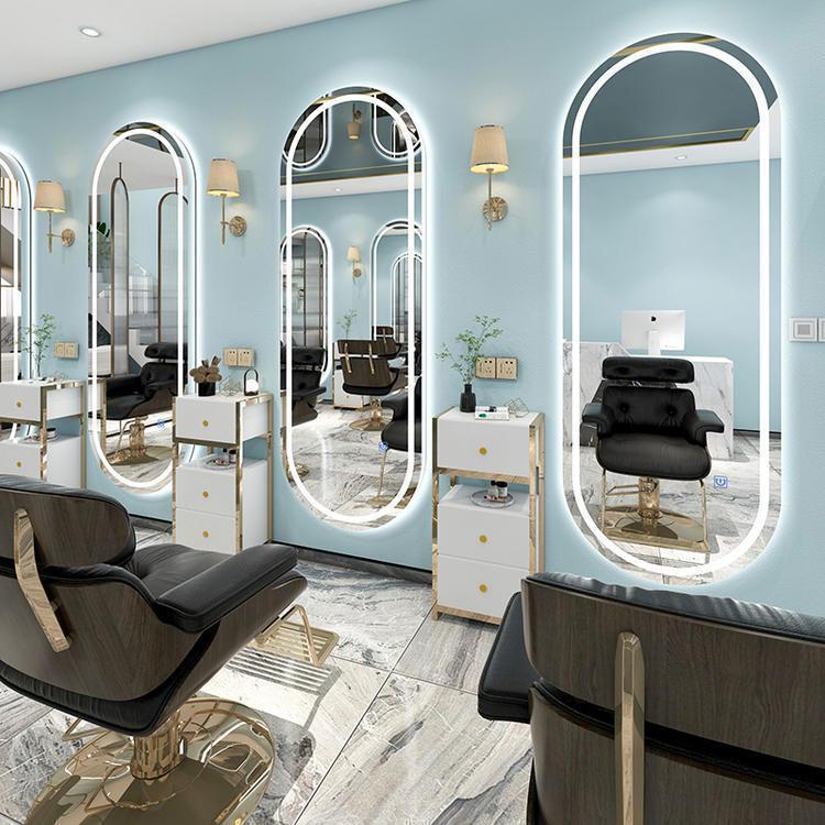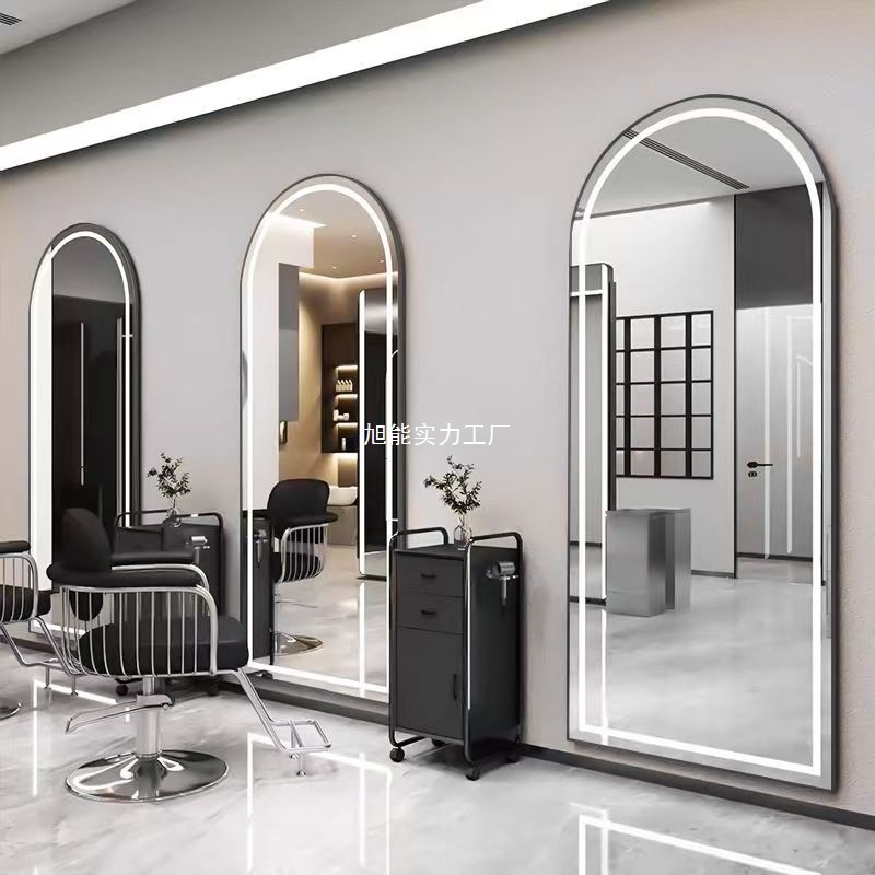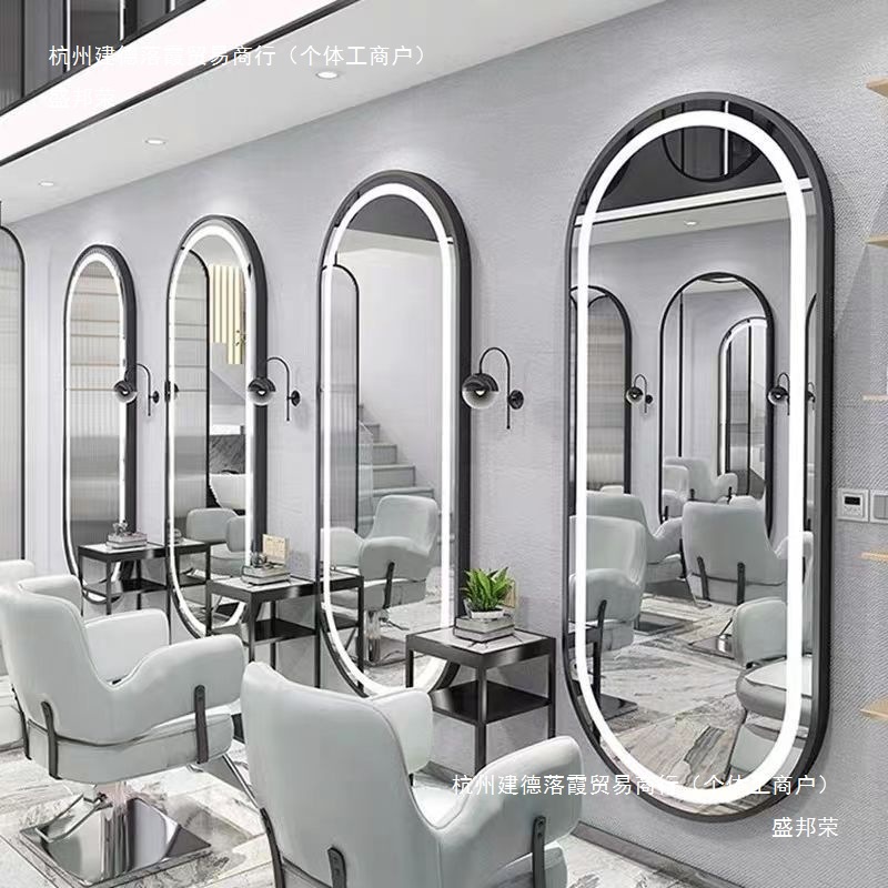 理髪店ミラー、フロアミラー、美容室壁掛けミラー、美容室バックライト付きヘアカットミラー、シンプルパーマと染め、ライトラグジュアリー
