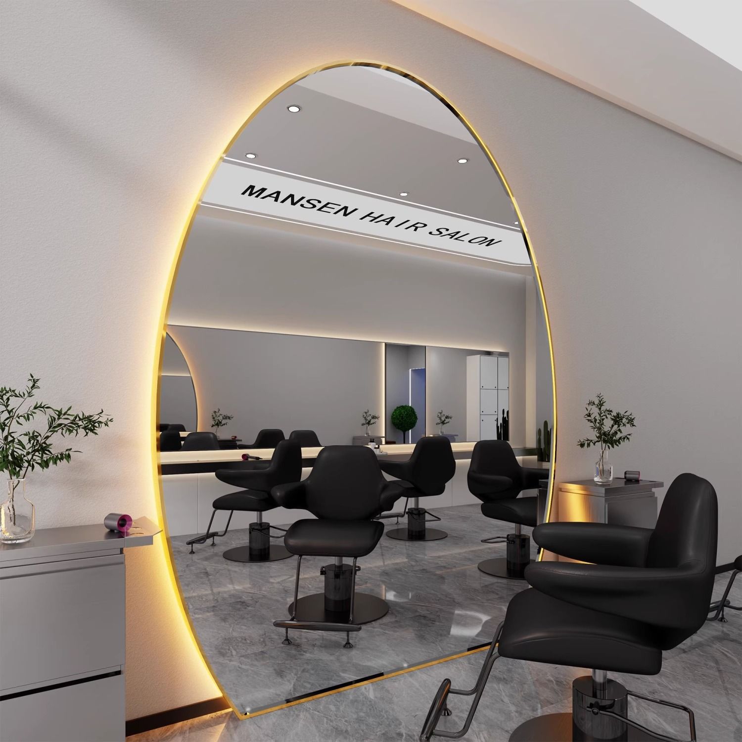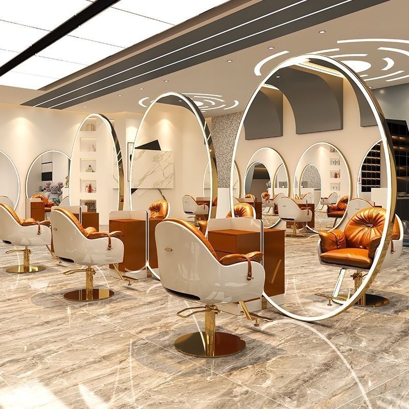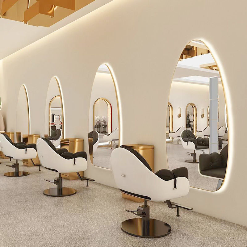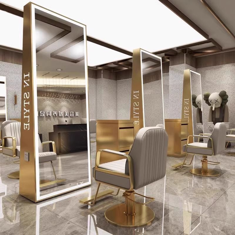 理髪店ミラー、フロアミラー、美容室壁掛けミラー、美容室バックライト付きヘアカットミラー、シンプルパーマと染め、ライトラグジュアリー