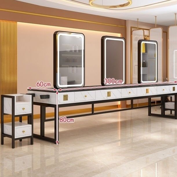 理髪店スマートミラー、理髪店ミラー、バスルームライトなし、理髪店ロングワークベンチ、ライトトレンディモデル