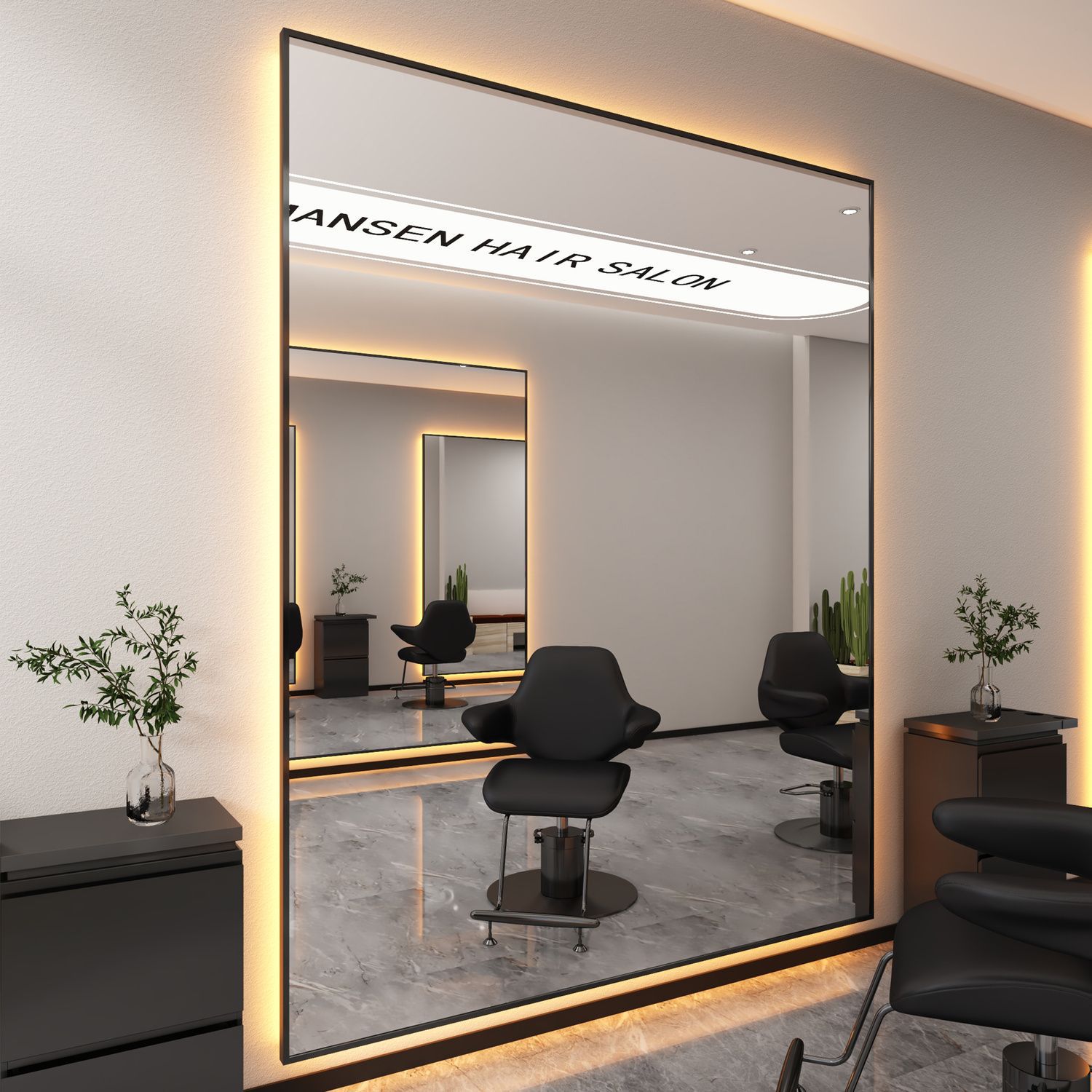 ネットセレブ美容室ヘアミラーテーブル専用ミラーLEDライト付き高級理髪店ミラーテーブル片面ヘアカットミラートレンディモデル