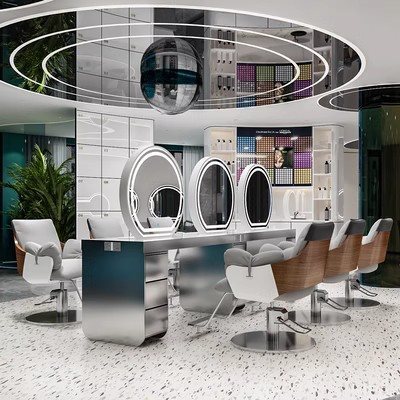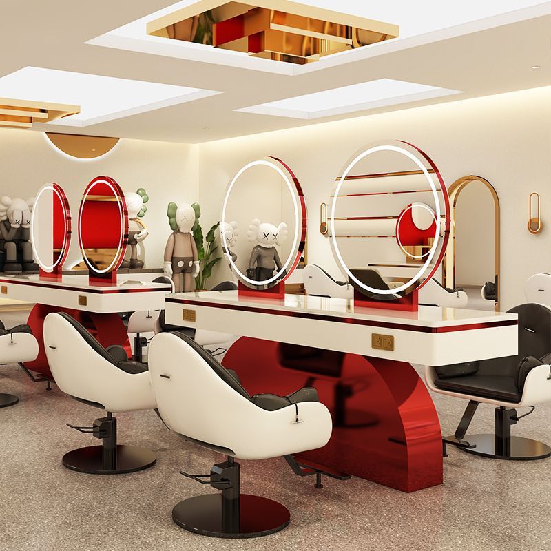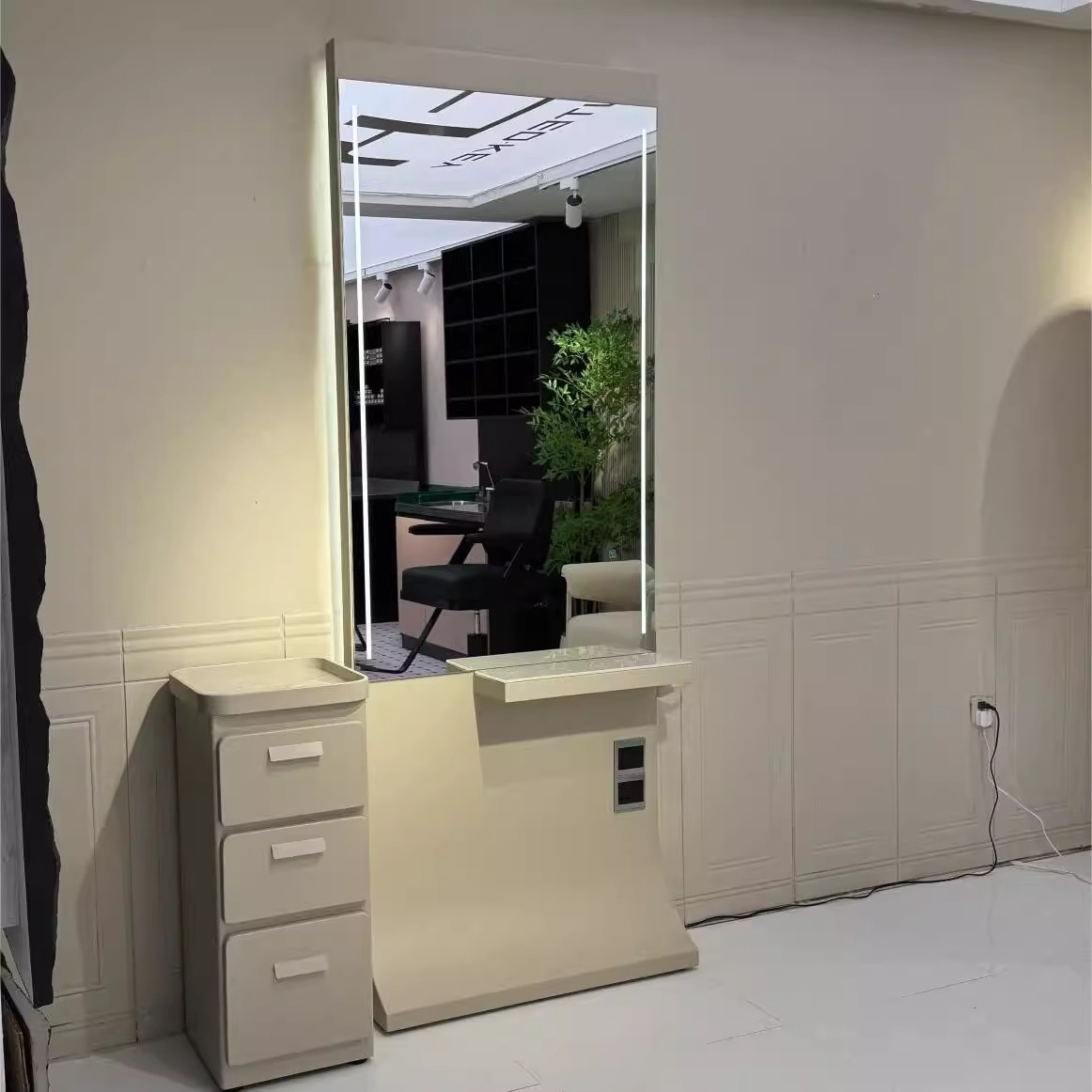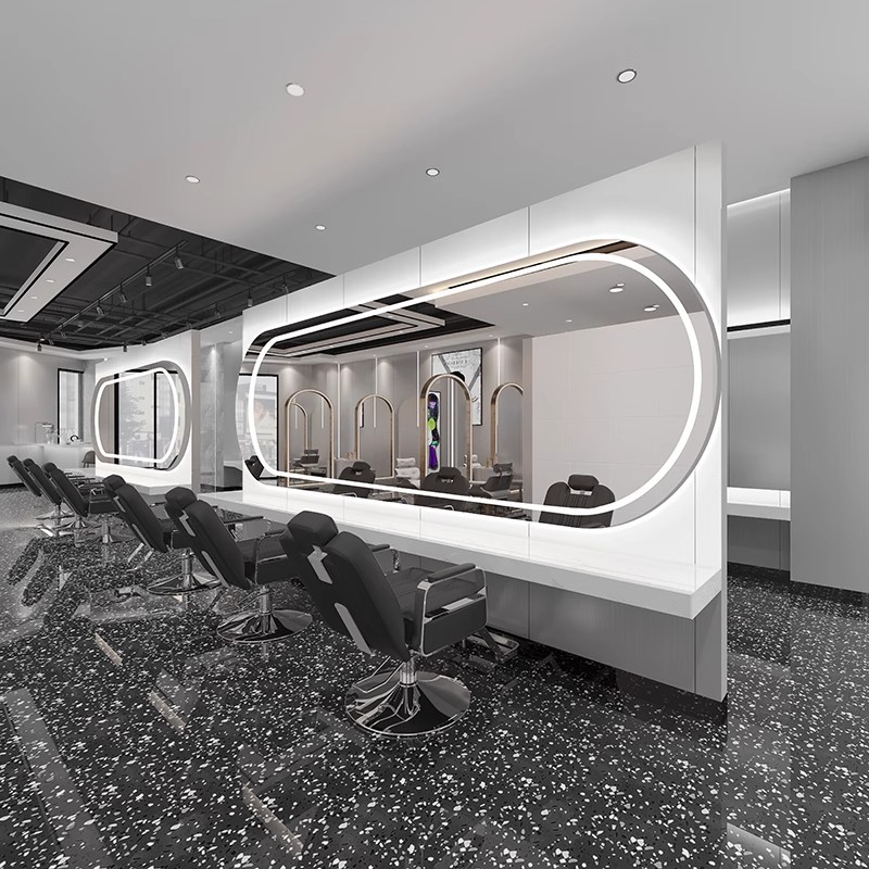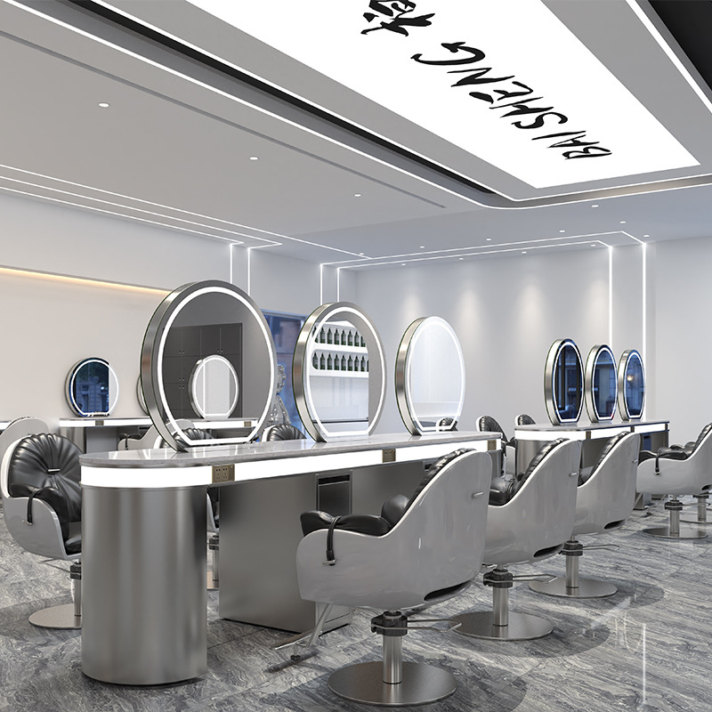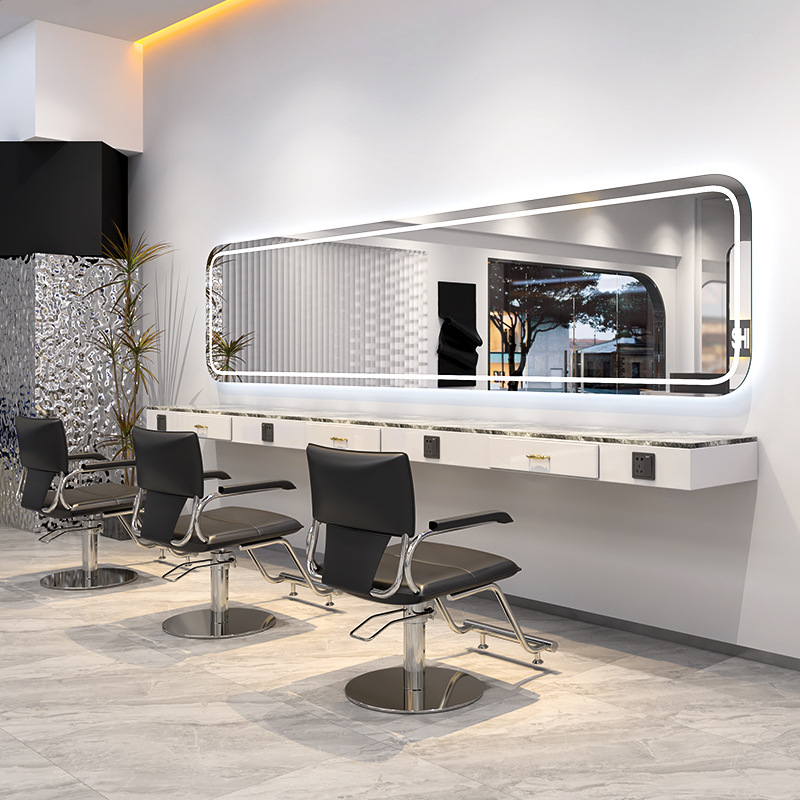 ヘアサロン インターネットセレブ トレンドショップ 壁掛けミラーキャビネット 一体型ミラーテーブル 専用理髪店 パーマ・染めエリア LEDミラーテーブル 美容ライト付き