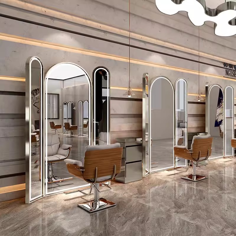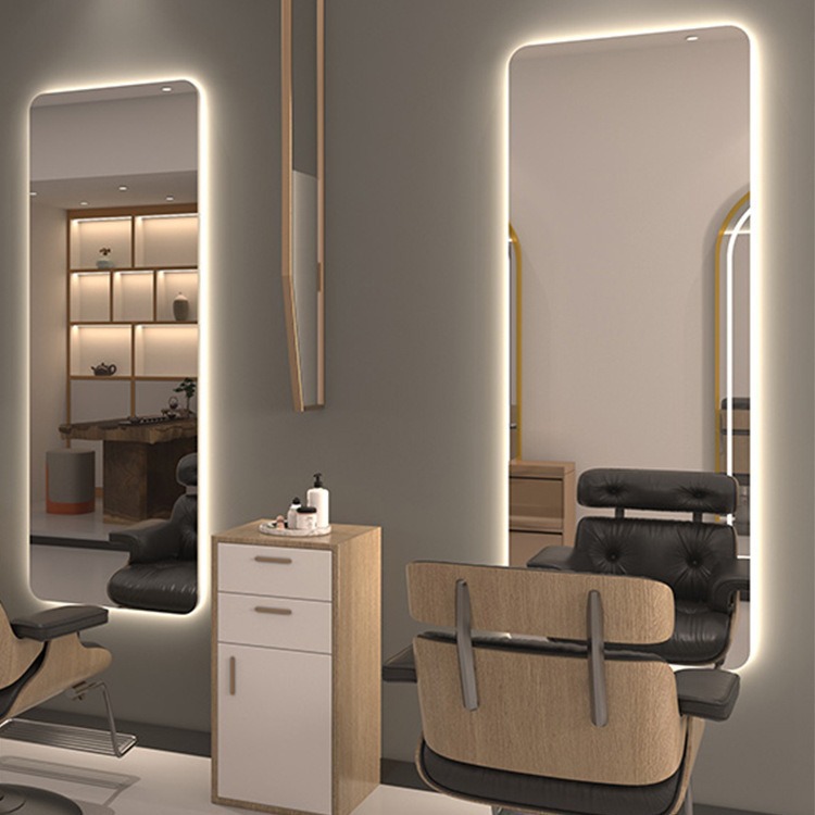 ネット赤同型美容店鏡台ランプ付きLED鏡理髪店壁掛け床置き鏡スマートミラーギャラリー専用
