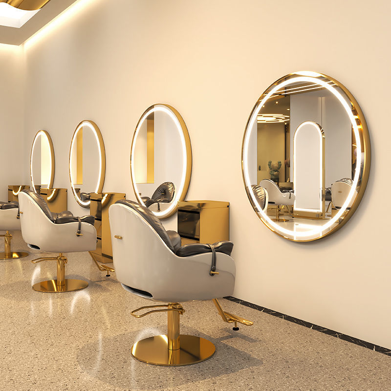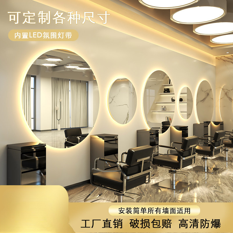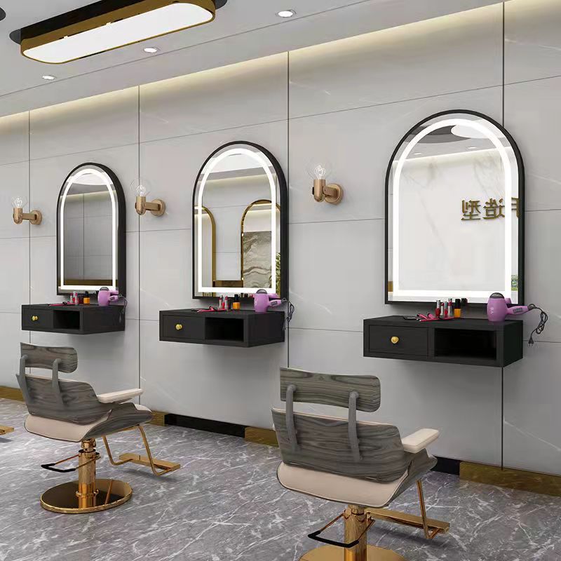 インターネット有名人理髪店ミラーテーブルヘアサロン特別な壁掛けライト付き壁掛け半円形ヘアサロンパーマと染色ヘアカットミラー