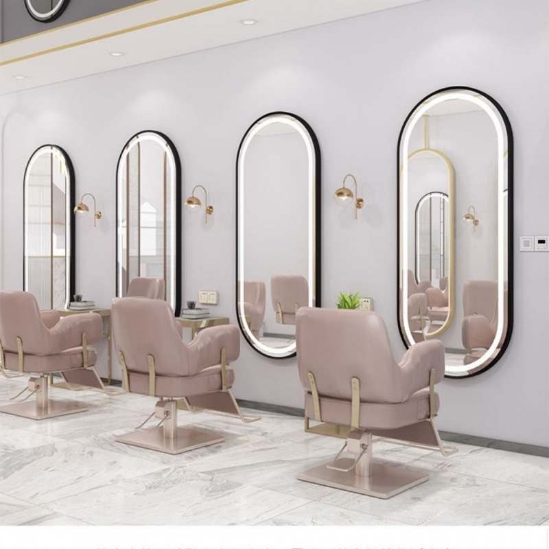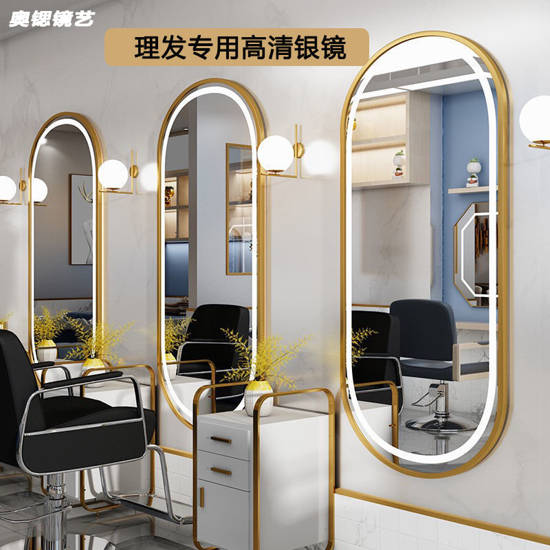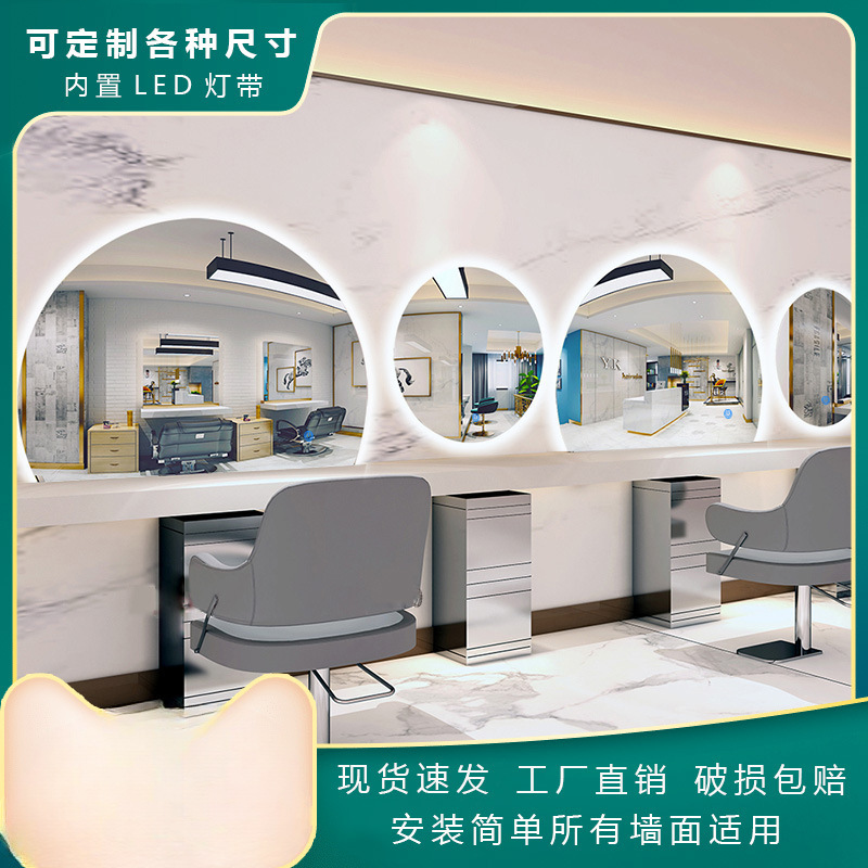 理髪店ミラーテーブル理髪ガチョウの卵ミラー特殊形状インターネットセレブトレンディな壁掛け片面発光ミラー理髪店ミラーライト付き