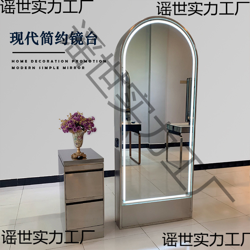 理髪店ミラー床置き片面と両面ライト付きステンレス鋼インターネット有名人ヘアカットパーマと染色ミラーヘアサロン理髪ミラーテーブル