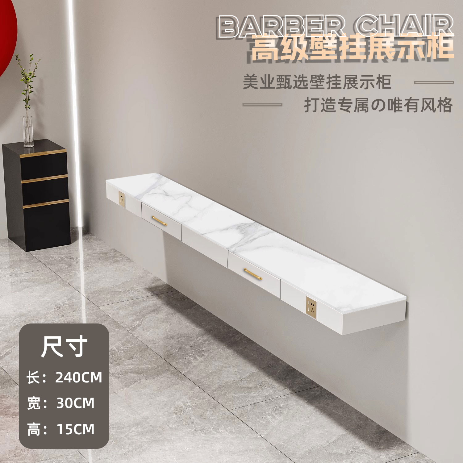 # 理髪店大理石カウンター鏡台引き出し付き美容店染湯区一体戸棚は壁を取り付けやすい