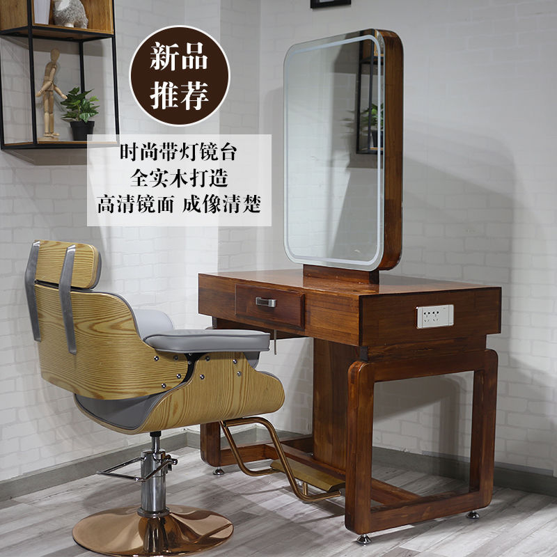 レトロ無垢材理髪ミラーテーブル理髪店ヘアカットパーマ染めミラーヘアサロン片面ミラー理髪ミラー