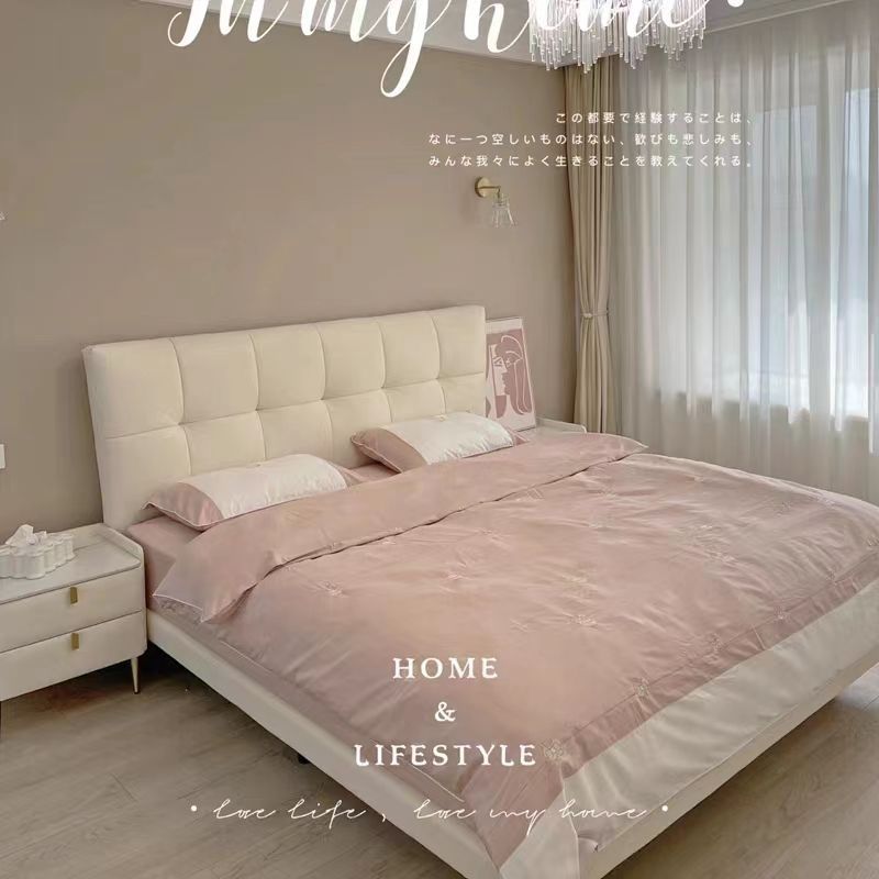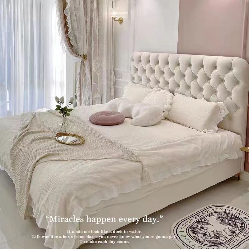 アメリカの軽贅沢ファッションソフトバッグは現代のシンプルな布芸ベッドinsネット赤主寝室二人結婚ベッドを引っ張る