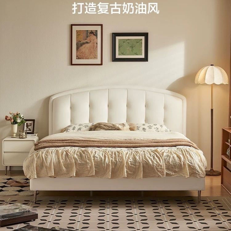 フランスクリーム風湯葉の主寝ベッド現代シンプルな小戸型高級大気二人布芸1メートル8結婚ベッド