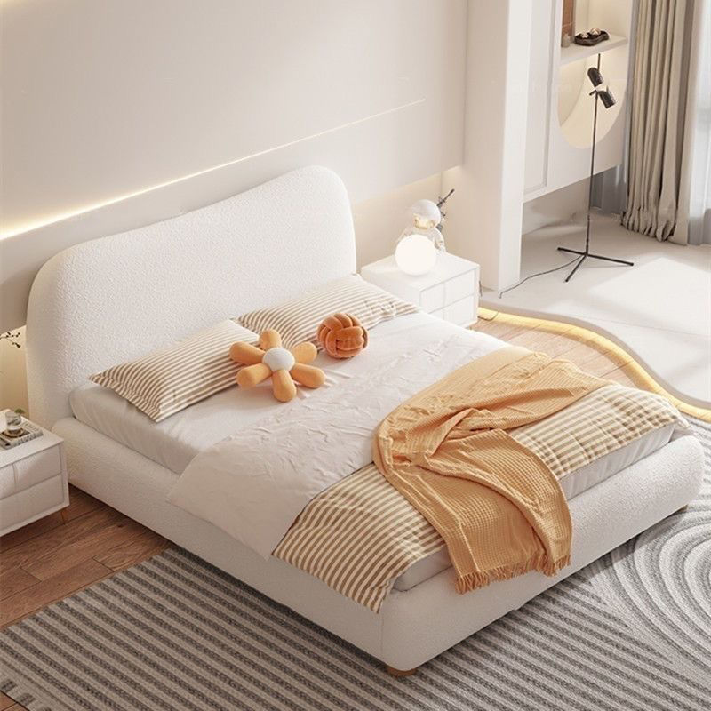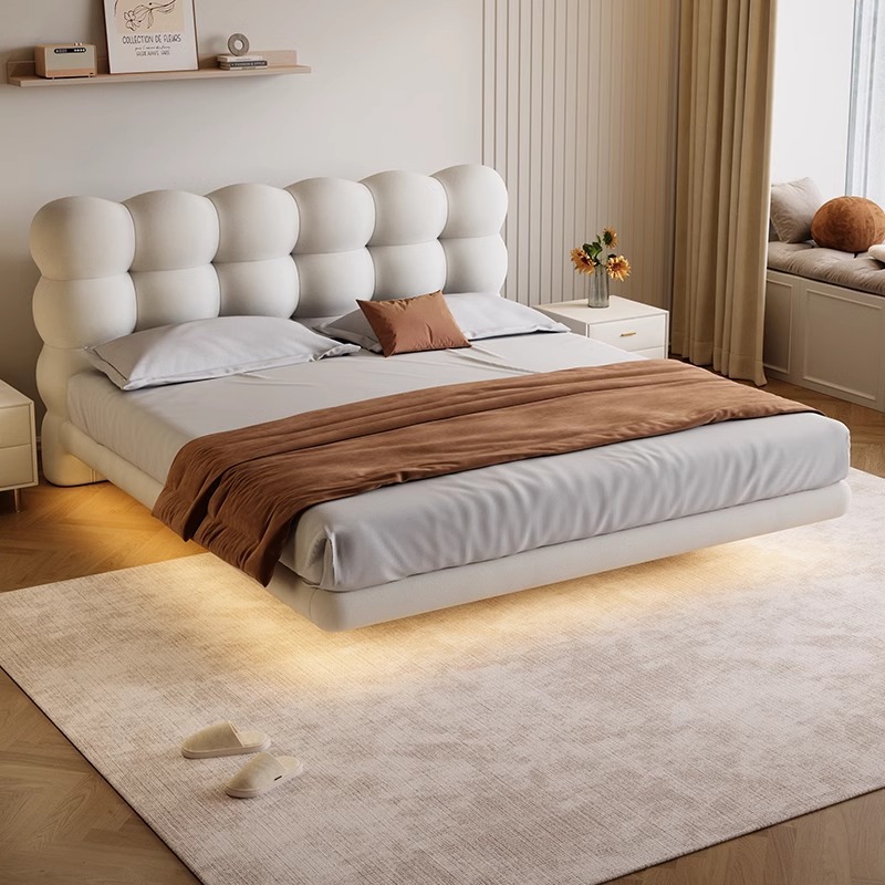 クリーム風ツインベッド雲輪ベッド現代シンプル2024新型家庭主臥小戸型賃貸布芸ベッド