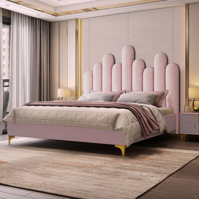 ヨーロッパ式の軽い豪華なベルベットのダブルベッドは現代的にシンプルで、主に背の高いベッドに寝ています。