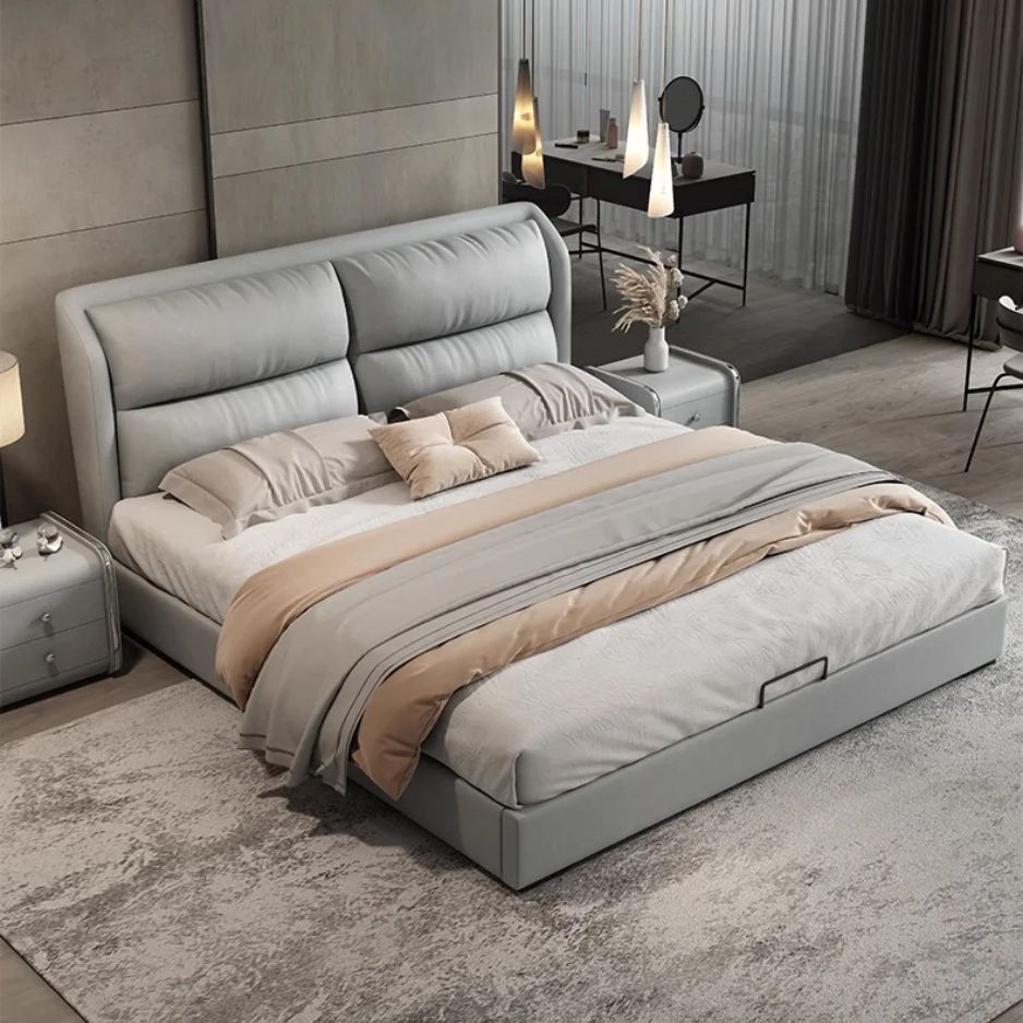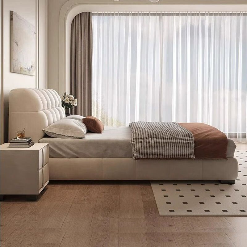 イタリア式現代シンプルで贅沢な真皮ベッド1.8ベッド主寝室大ベッド頭層牛革ツインベッド2メートルベッド主寝