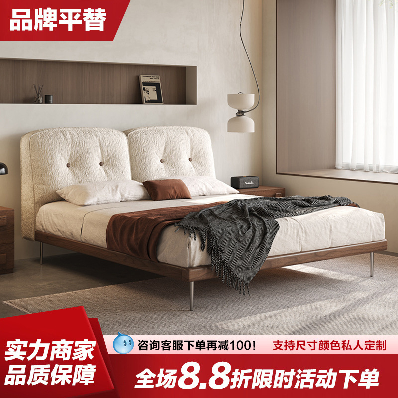 現代のシンプルなネット赤懸濁ベッド1.5/1.8メートルツインベッドの高級大気主臥実木ソフトバッグ布芸ベッド