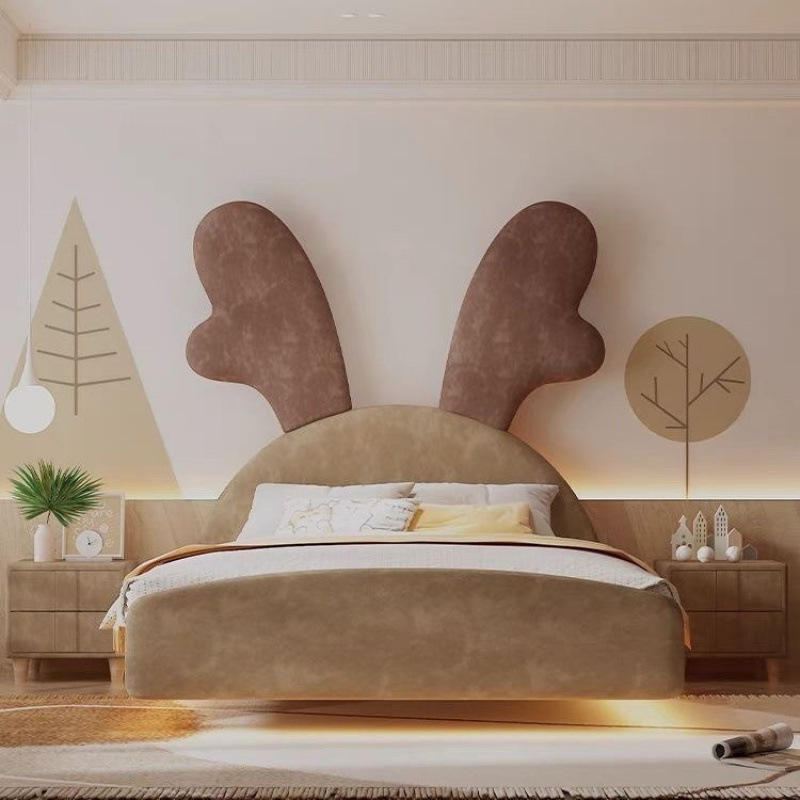 子供用ベッドの男の子の女の子が浮いているベルベットの布芸カードのベッドはシンプルで1メートル5実木シングルベッドの鹿クリーム風である