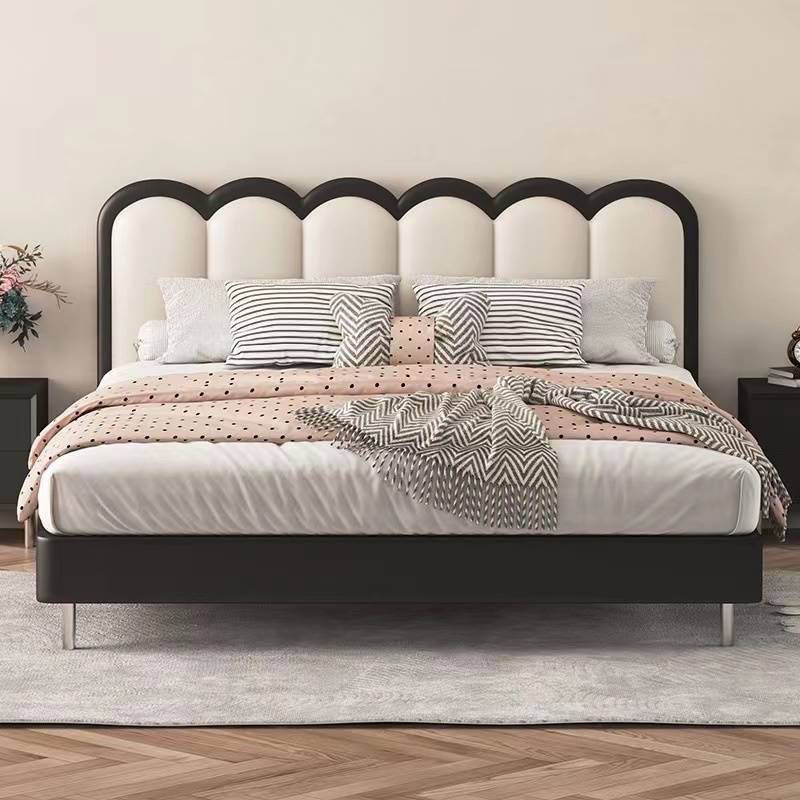 クリーム風泡芙ベッド二人ネット赤主寝ベッド現代シンプル北欧布芸ベッドins風女子プリンセス風