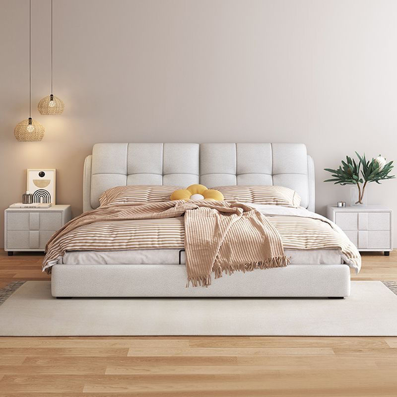 イタリア式の軽い豪華な科学技術の布のダブルベッドの女子学生の寝室のベッドのins風の現代の簡単な布芸のベッドの頭の米の白いベッド