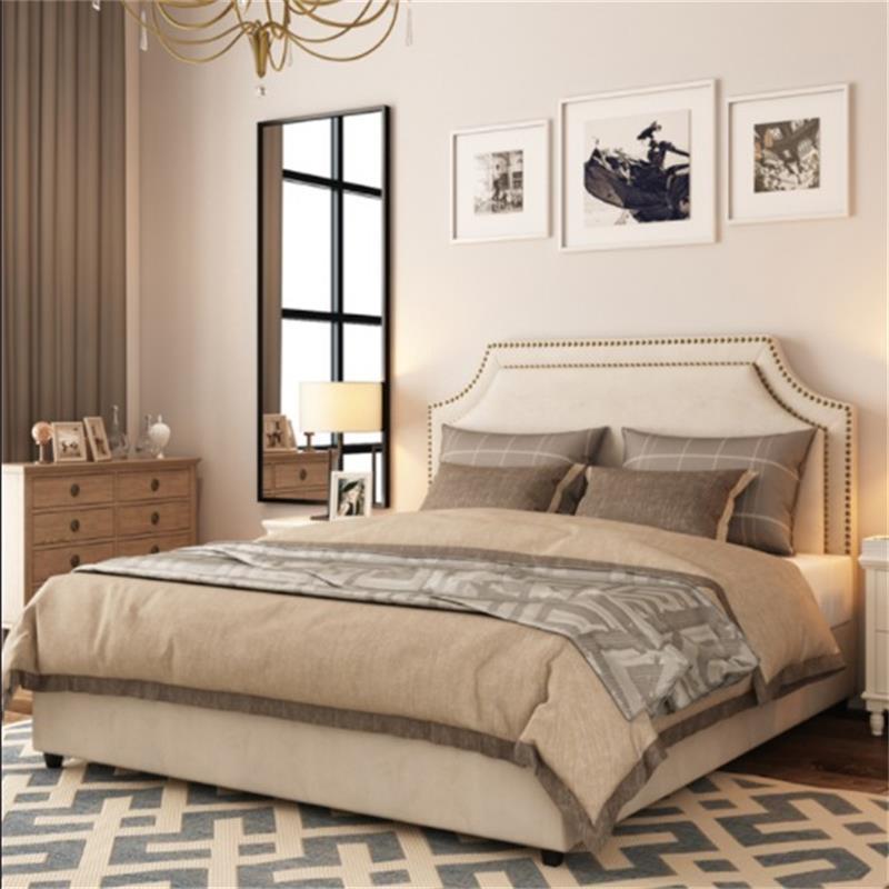 現代のシンプルな主臥床の低いベッドの軽い豪華なクリーム風綿麻布芸ベッドの小戸型がそろっています。