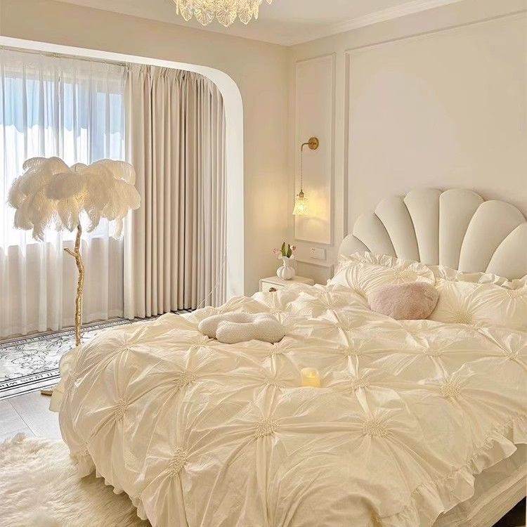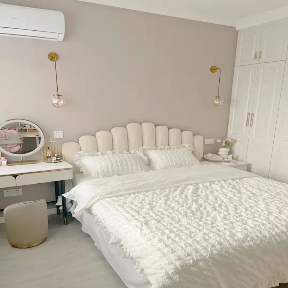 クリーム風ネット赤フランスマシュマロ布芸ベッドシンプルな白い主臥寝室羊小毛ツインベッド