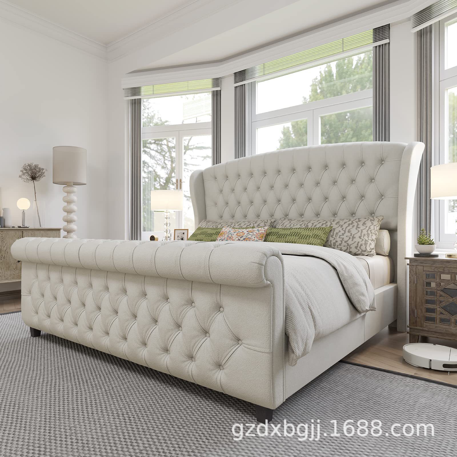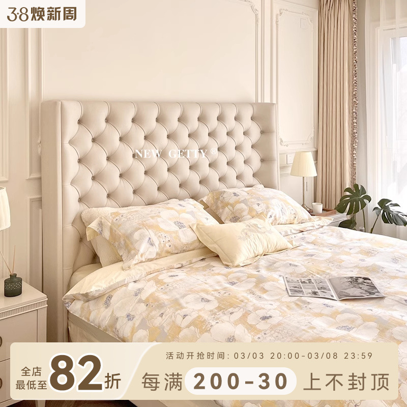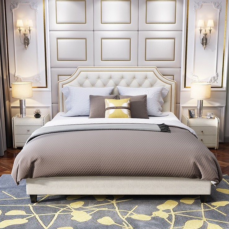 北欧ボタン布芸ベッド実木フランスベッドクリーム風軽豪華レトロ主寝室結婚ベッドソフトバッグ二人ベッド