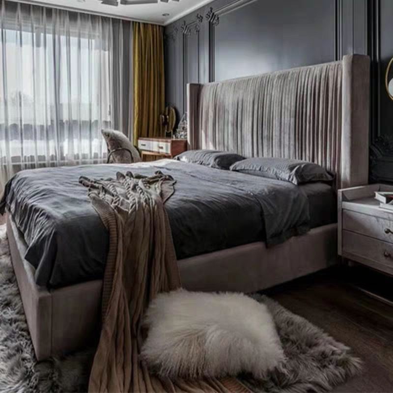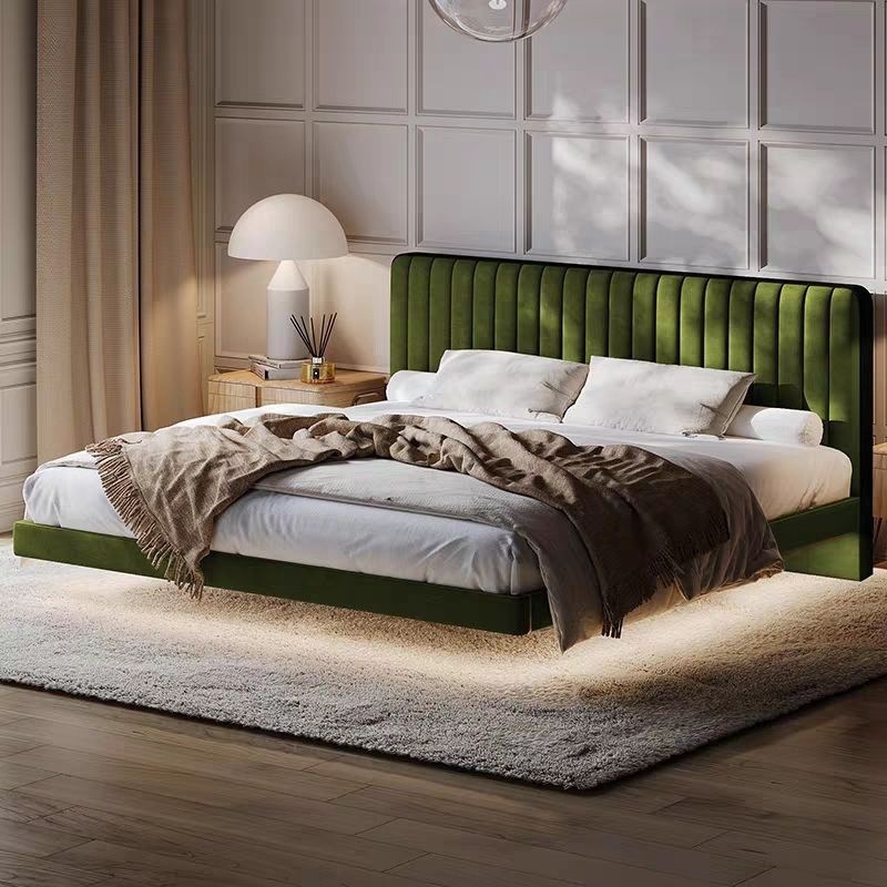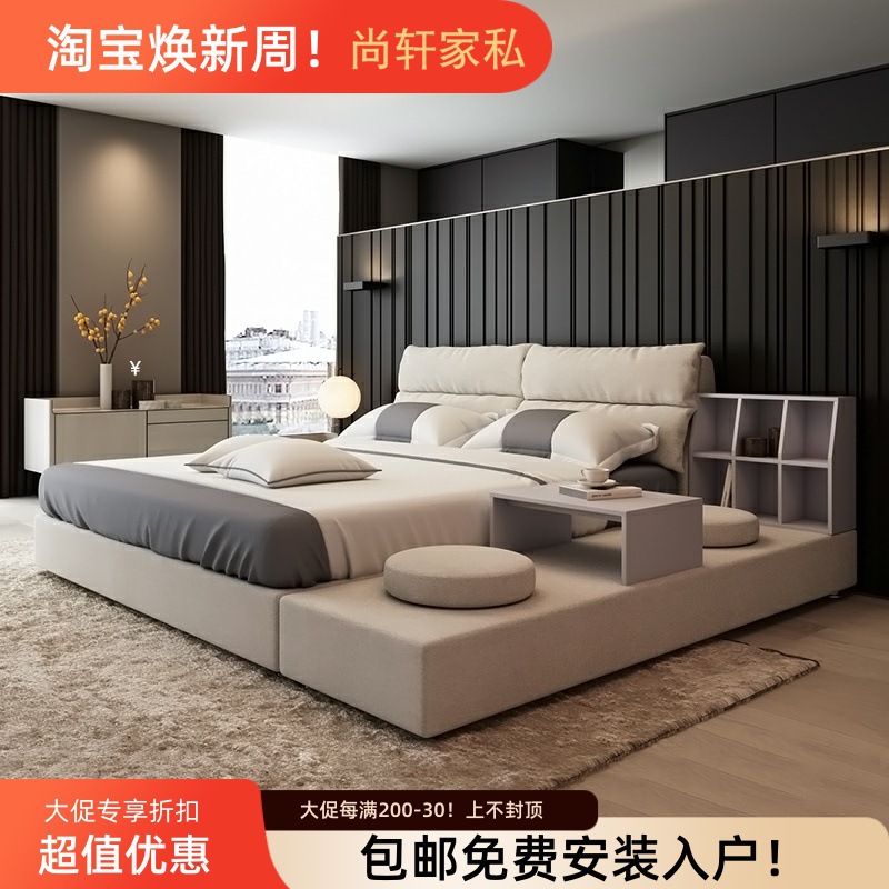 懸濁意式主臥現代極簡科技絨大ベッド二人の軽豪華な小型タイプのダブルベッドの高級結婚ベッド