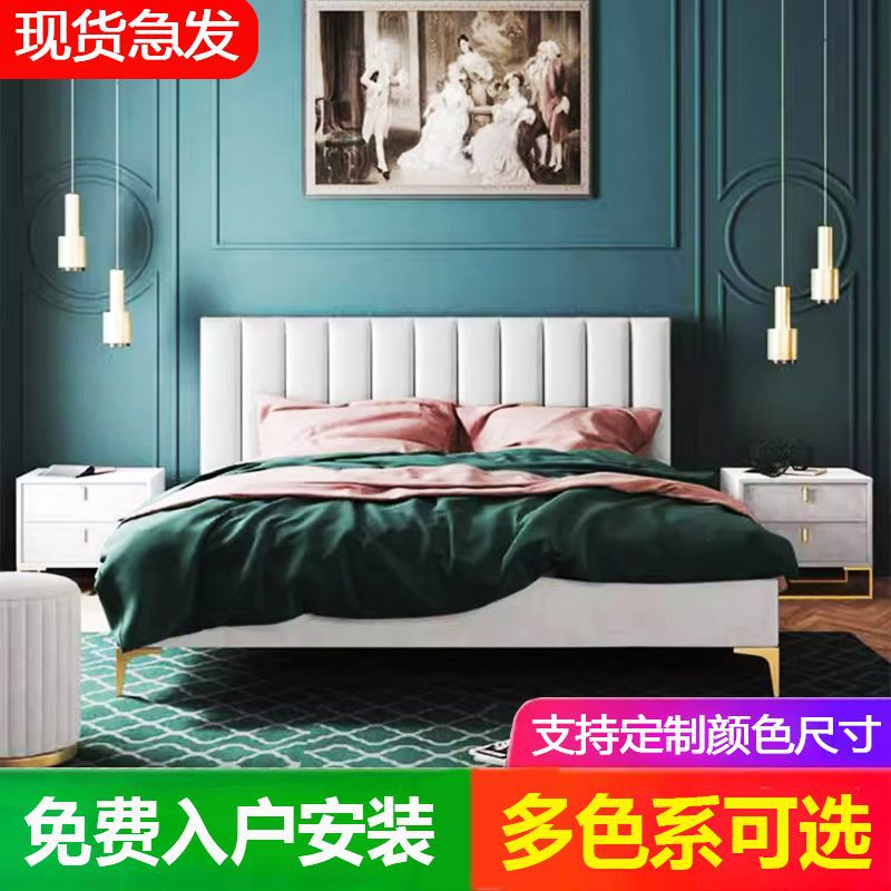 現代の軽豪華な主臥大ベッド1.8メートル端大気真皮ベッド1.5メートル誘導灯付き高級ツインベッド