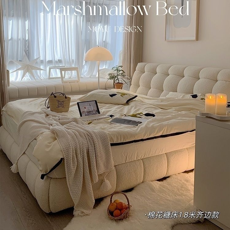 2025新型マシュマロ布芸ベッド女子寝室クリーム風二人1.8x2メートル主臥二人シュークリームベッド