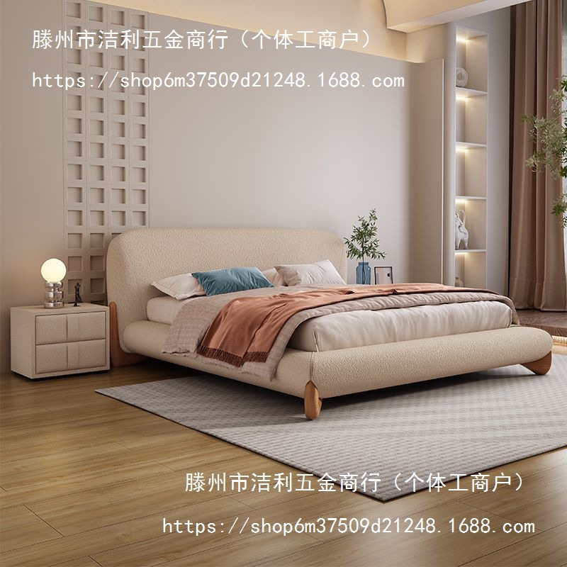 新型ネット赤クリーム風泡ベッド羊小毛ベッド現代シンプル寝室大ベッドダブルベッド科学技術布芸ベッド