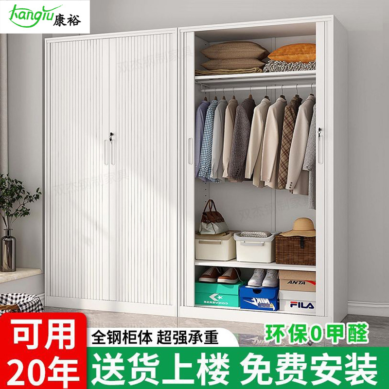 コーナーワードローブ家庭用寝室簡易ワードローブ丈夫で耐久性のある厚手の太りフルスチールフレーム組立金属ワードローブ