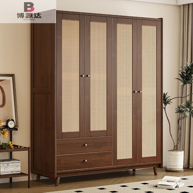 北欧藤編みの実木箪笥現代シンプルな寝室の家庭用の寂しい風がドアを開けた三四五門藤編み箪笥